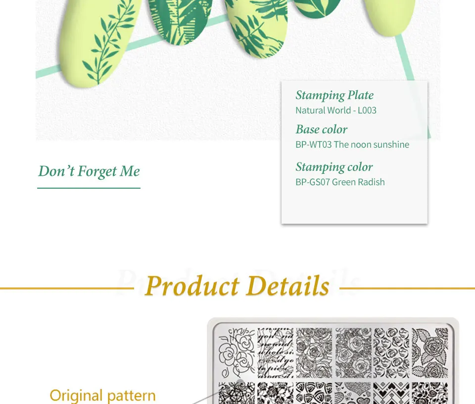 Пластины для стемпинга ногтей BORN PRETTY, из нержавеющей стали, с изображением природных листьев, растений