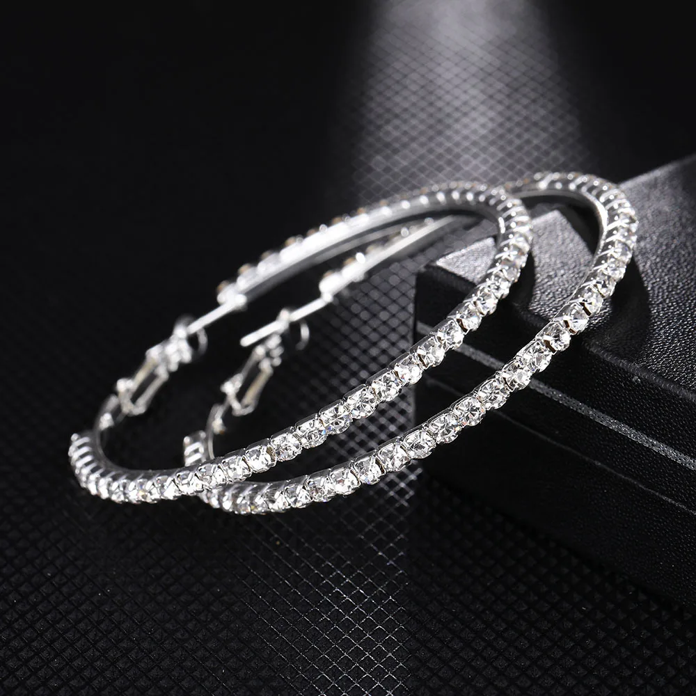 Женская одежда большого размера круг стразы серьги в виде колец, массивные панк Европы 20-100 мм с украшением в виде кристаллов круглые серьги ювелирные изделия вечерние подарок