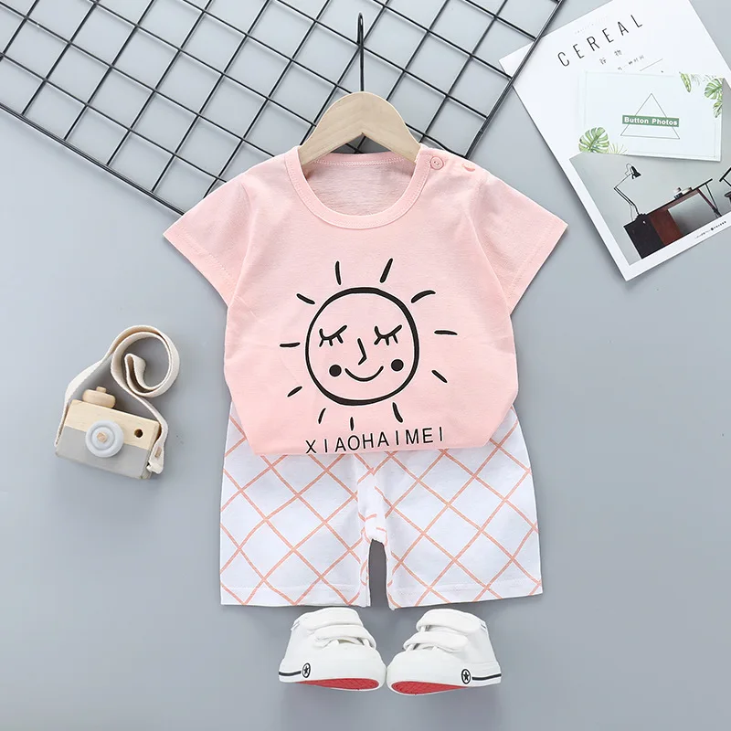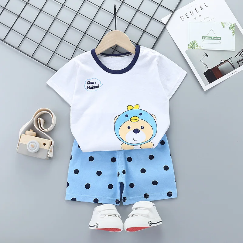 2020 комплекты одежды для маленьких мальчиков и девочек, летняя хлопковая футболка с коротким рукавом и мультяшным рисунком, Одежда для новорожденных, костюм, детская верхняя одежда, футболки