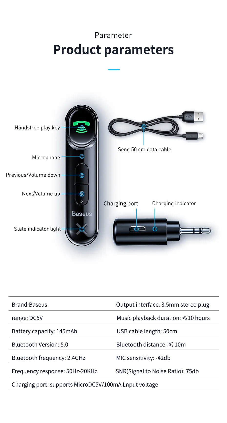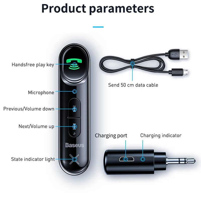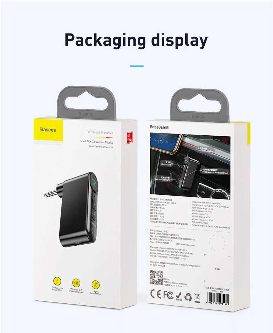 Baseus автомобильный Aux Bluetooth адаптер 3,5 мм аудио Bluetooth 5,0 автомобильный комплект беспроводной громкой связи приемник для телефона передатчик музыка