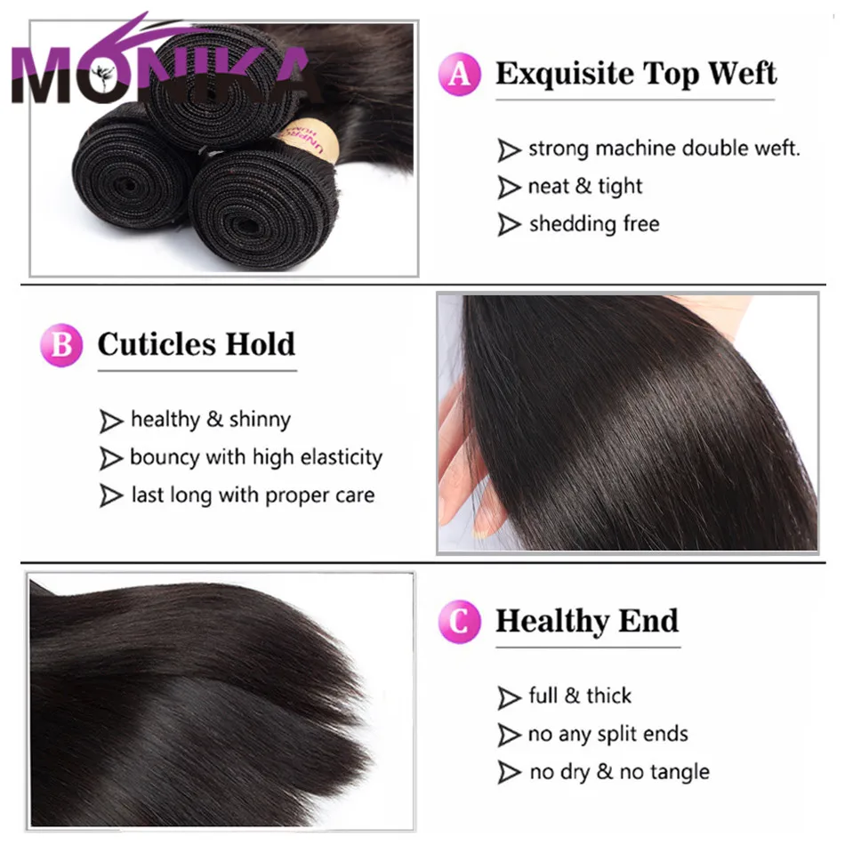 Пряди прямых натуральных волос Monika, пряди, малазийские человеческие волосы Реми для наращивания, от 10 до 30 дюймов