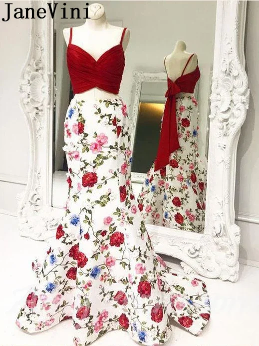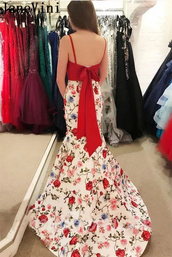 Женское платье с цветочным принтом JaneVini, Красное Длинное Платье-Русалка с цветочным принтом, вечерние платья для выпускного вечера 2020, vestiti eleganti