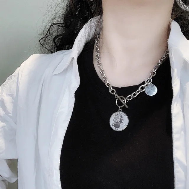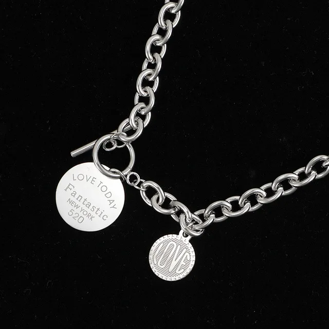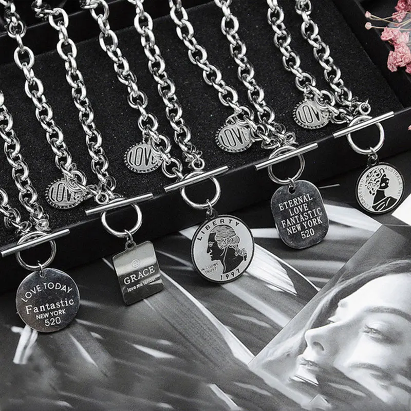 Монета KMVEXO из нержавеющей стали, в стиле панк, хип-хоп, рок, любовь геометрические формы, кулон, ожерелье, для женщин, мужчин, круглая, цепочки букв, уличная бижутерия