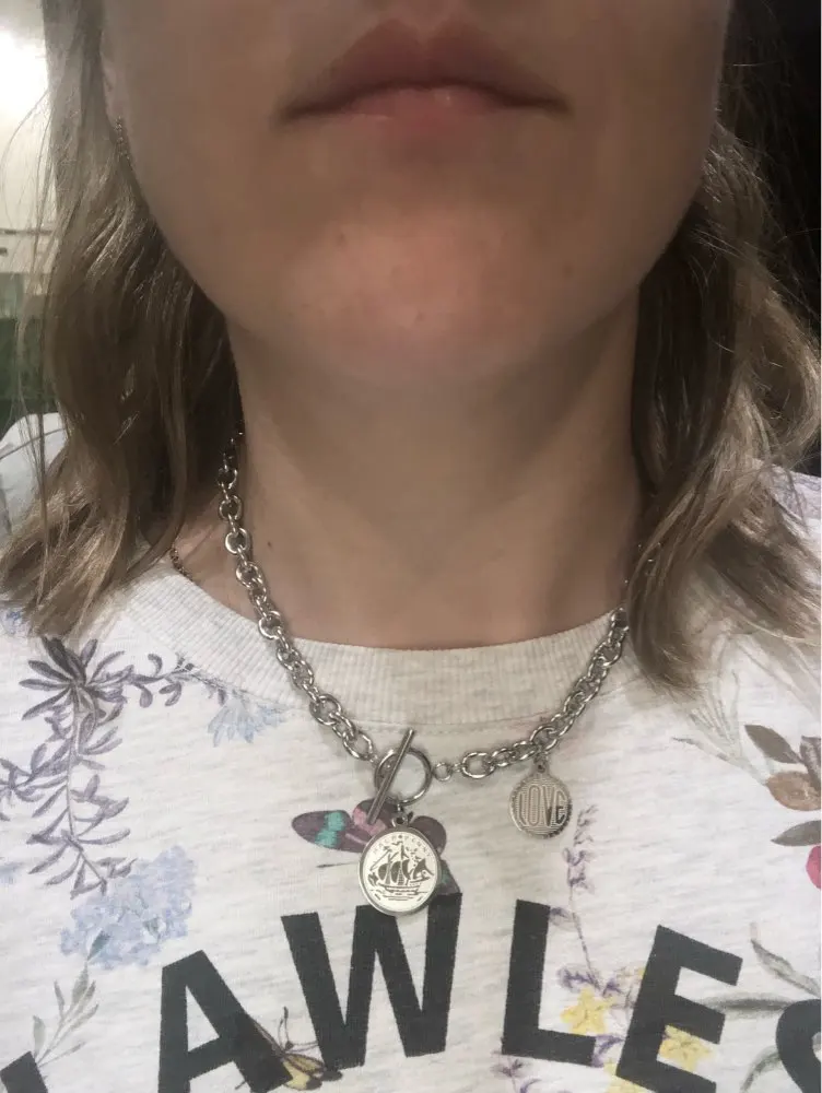 Очень красивое и качественное ожерелье, смотрится стильно, выполнено из нержавеющей стали, просто идеально, без единого дефекта. Покупкой очень довольна. Спасибо продавцу!