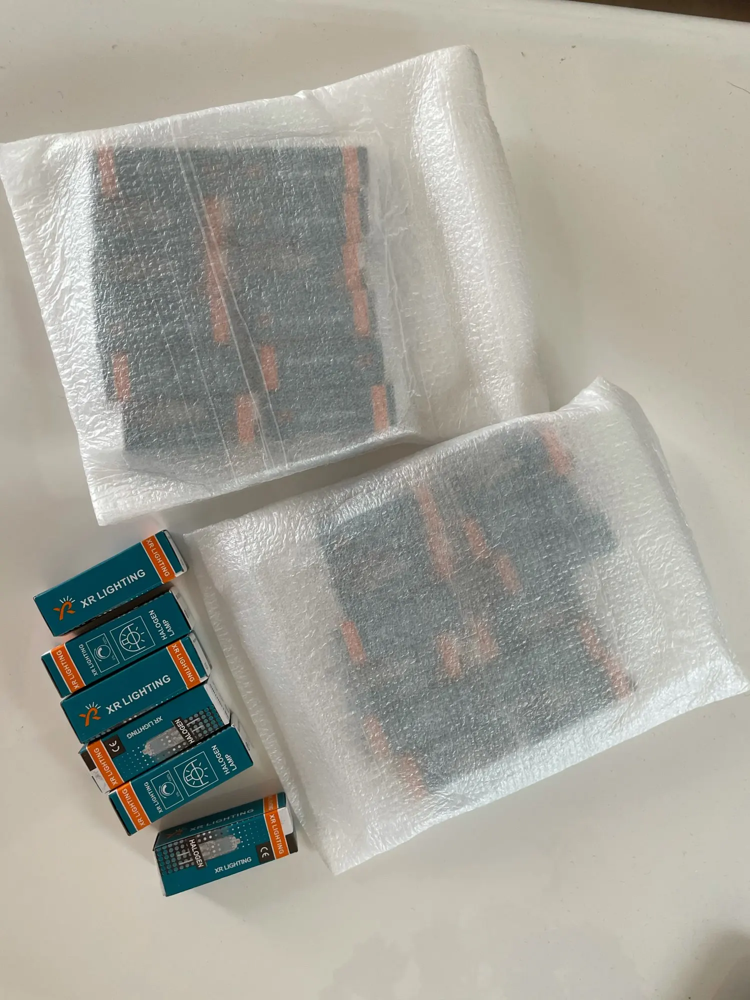 Заказ пришел очень быстро. Каждая лампа в отдельной коробочке. Работаю! Но света не очень много.