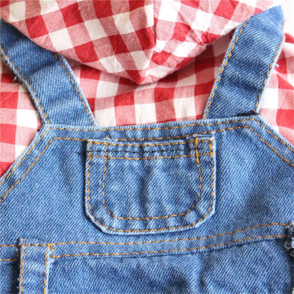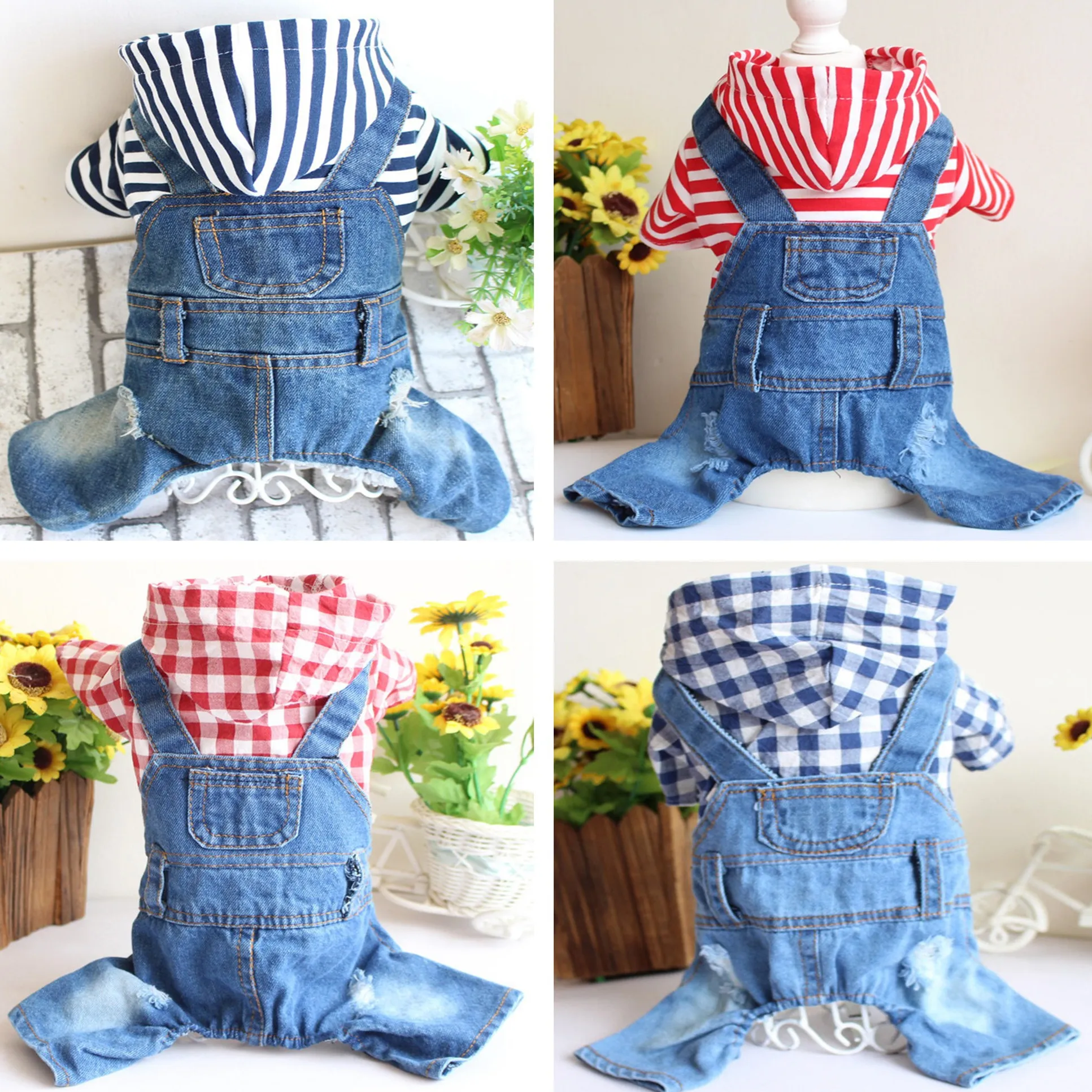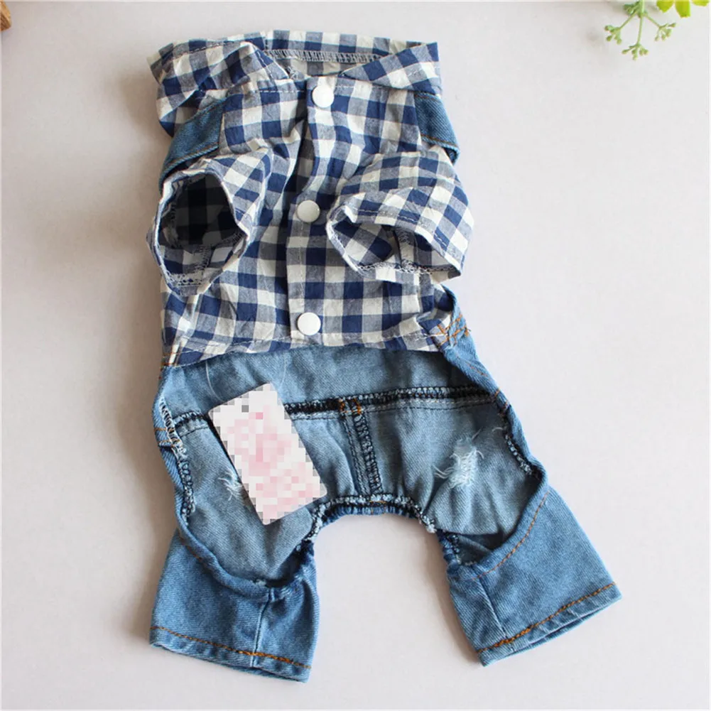 Джинсовый комбинезон для домашних животных, толстовка в клетку, ком...