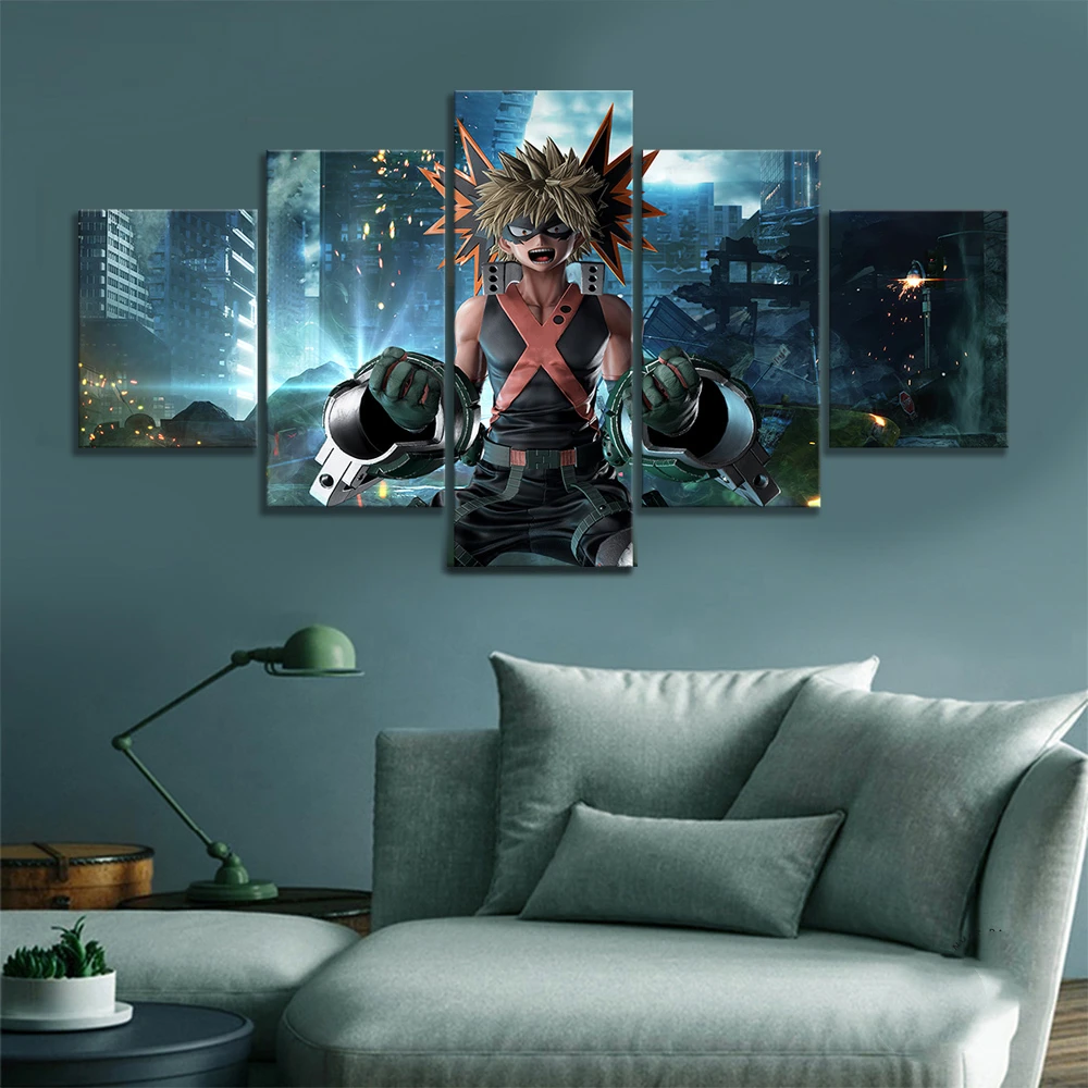 Домашний декор модульная Картина на холсте 5 шт. My Hero academic Bakugou Katsuki картина в стиле аниме постер Холст Картина оптовая продажа