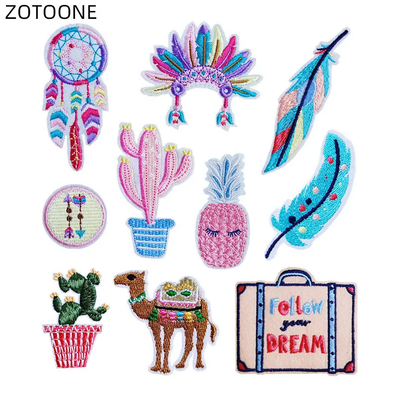 Вышитый значок ZOTOONE, железный нашивка с перьями для одежды, джинсов, сделай сам, верблюд, кактус, нашивки для детской сумки, аппликация E