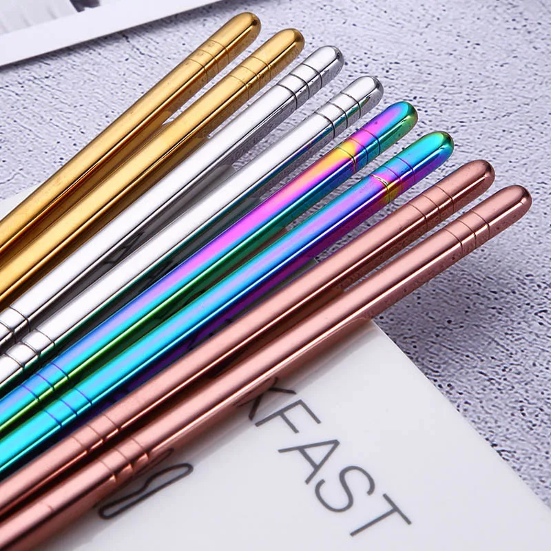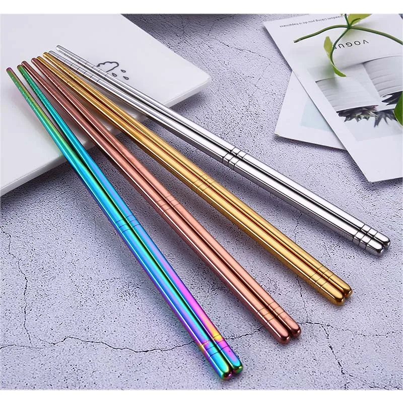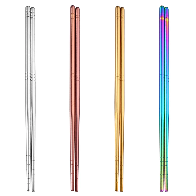 Многоразовые палочки для еды, высококачественные прочные палочки из нержавеющей стали для суши, лапши, серебра, золота, розового золота, радуги