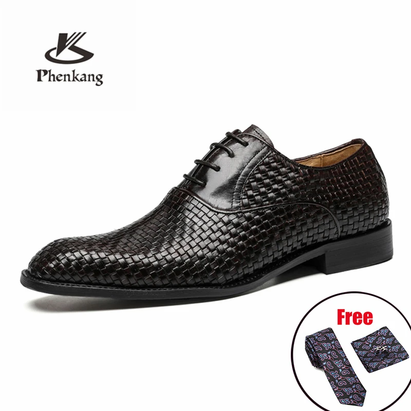 Мужские кожаные туфли, деловые Костюмные туфли, мужские брендовые черные свадебные мужские туфли из натуральной кожи на шнуровке Phenkang 2022