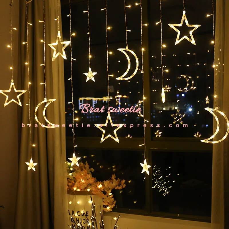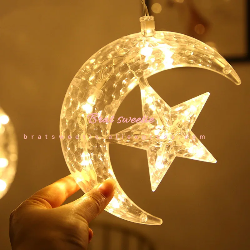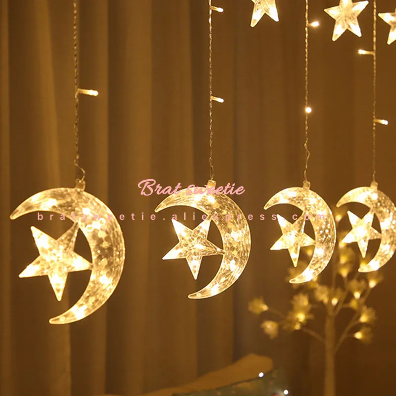 Лунная звезда, светодиодная гирлянда EID Mubarak, Рождественские огни, декор для вечерние, рождественские украшения для дома и улицы