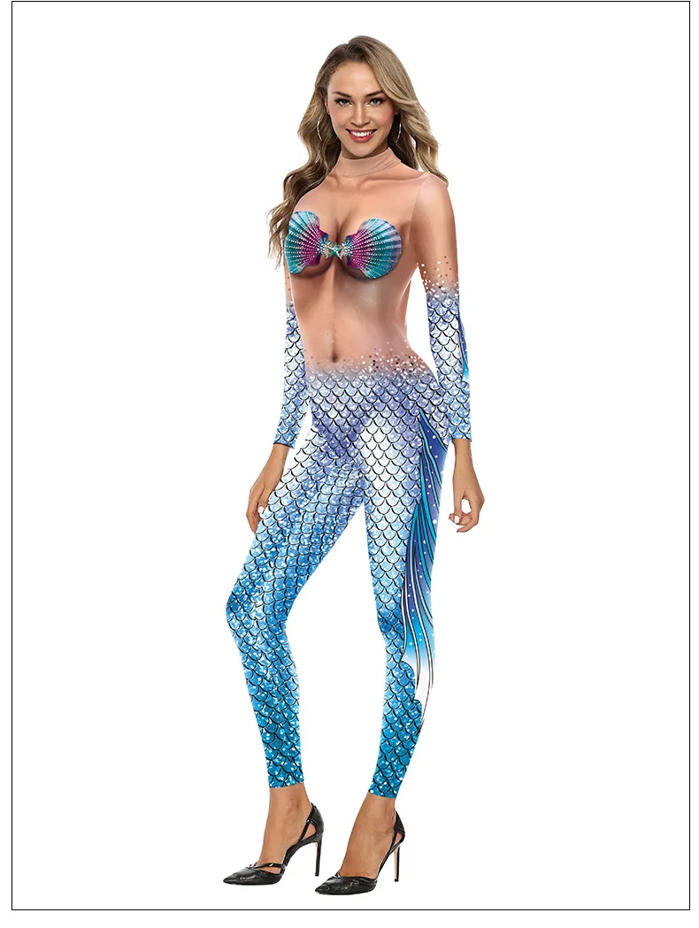 VIP Мода 2020 сексуальные костюмы для женщин Новое поступление 3D обнаженные Смешные Косплей Русалка Принцесса боди блестящие рыбья чешуя костюмы