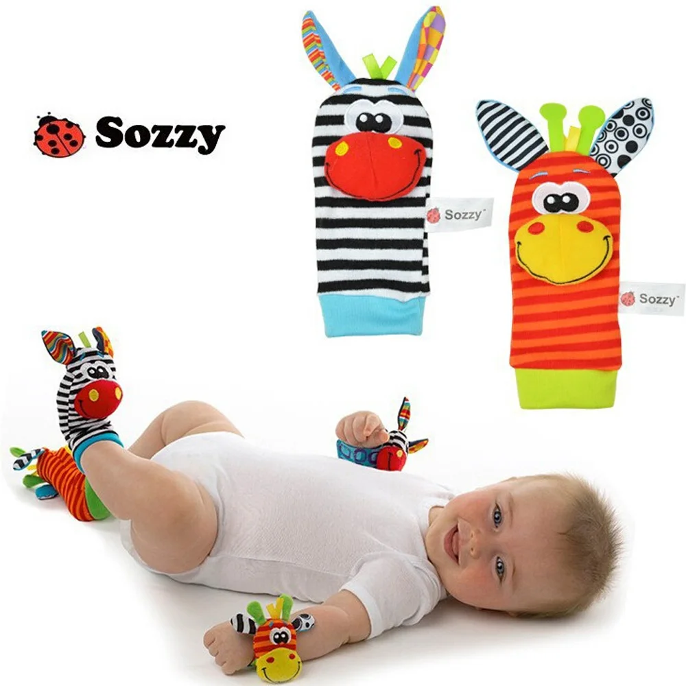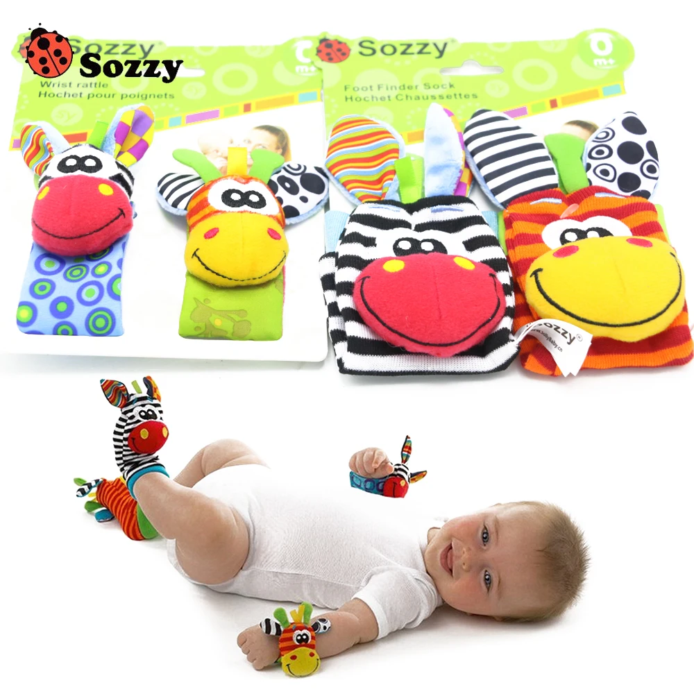 40 шт.лот, детские погремушки, игрушки Sozzy, садовые жуки, погремушки на запястье и носки для ног, 4 вида (2 шт. талии + 2 шт. носков), 10 комплектов