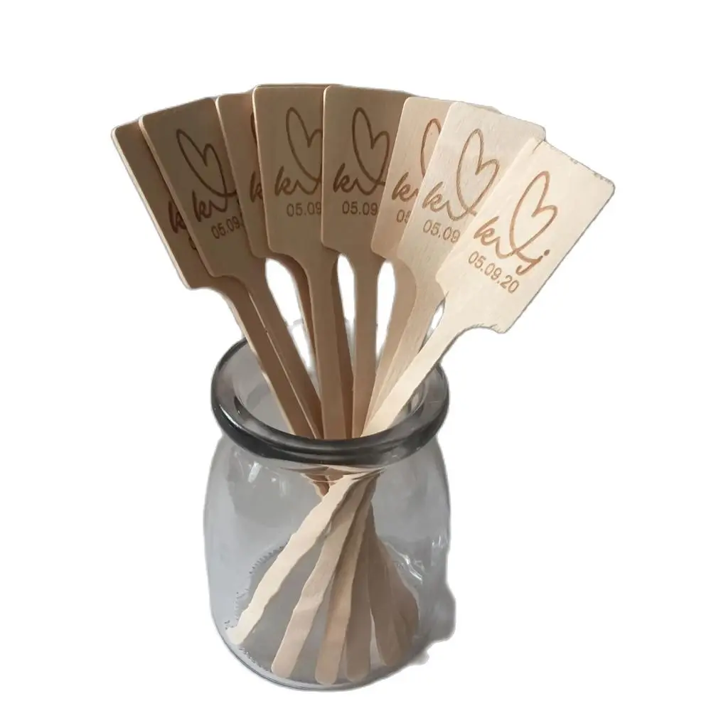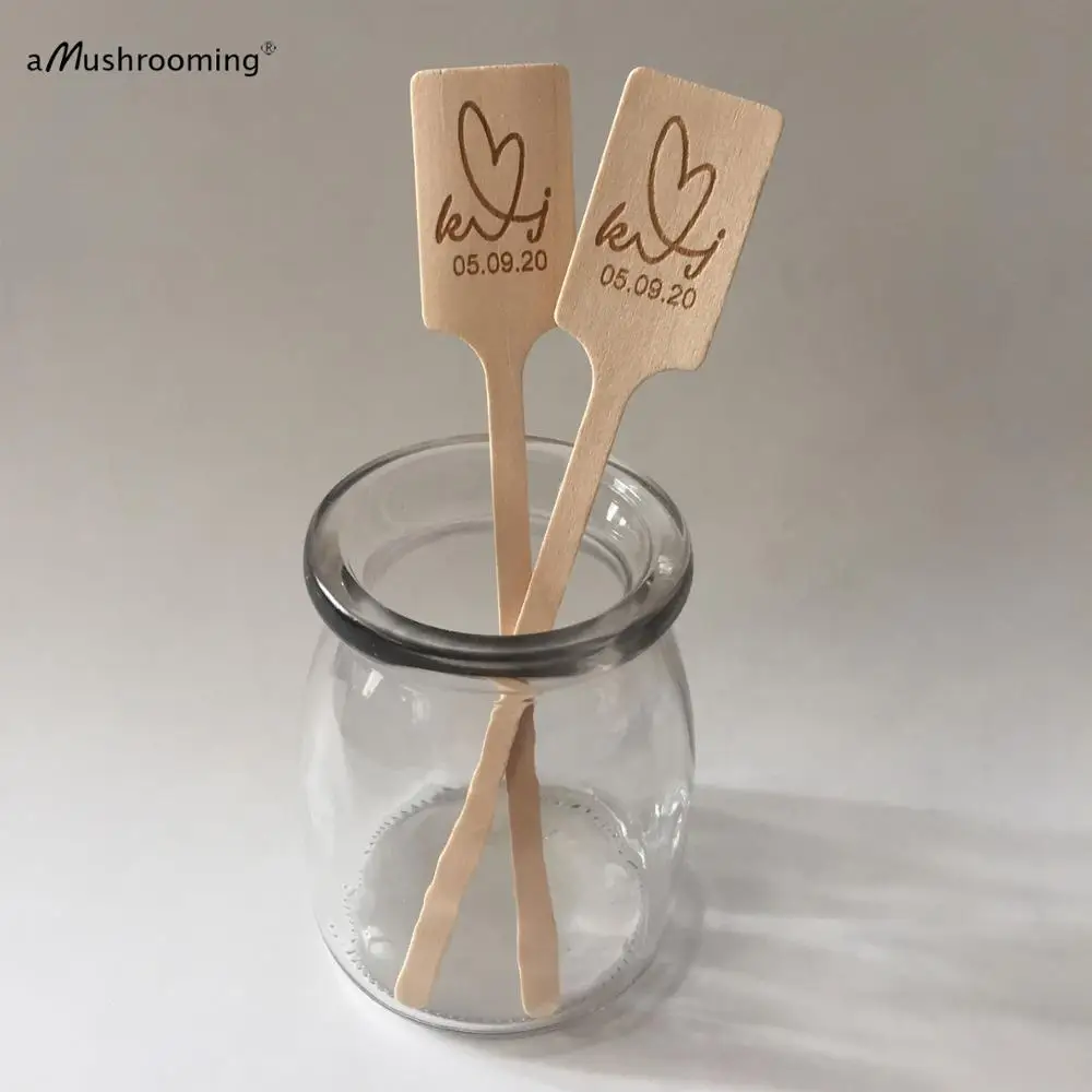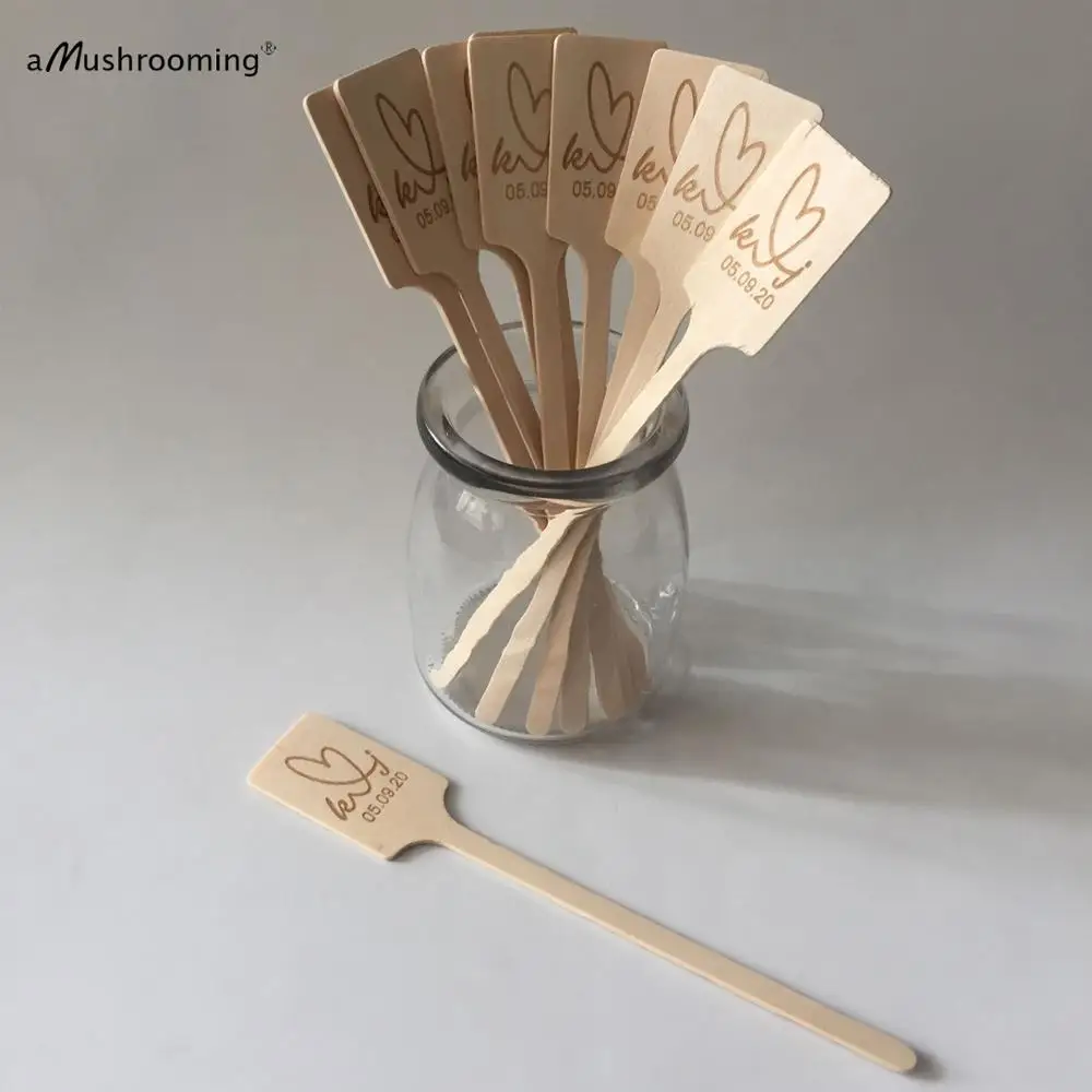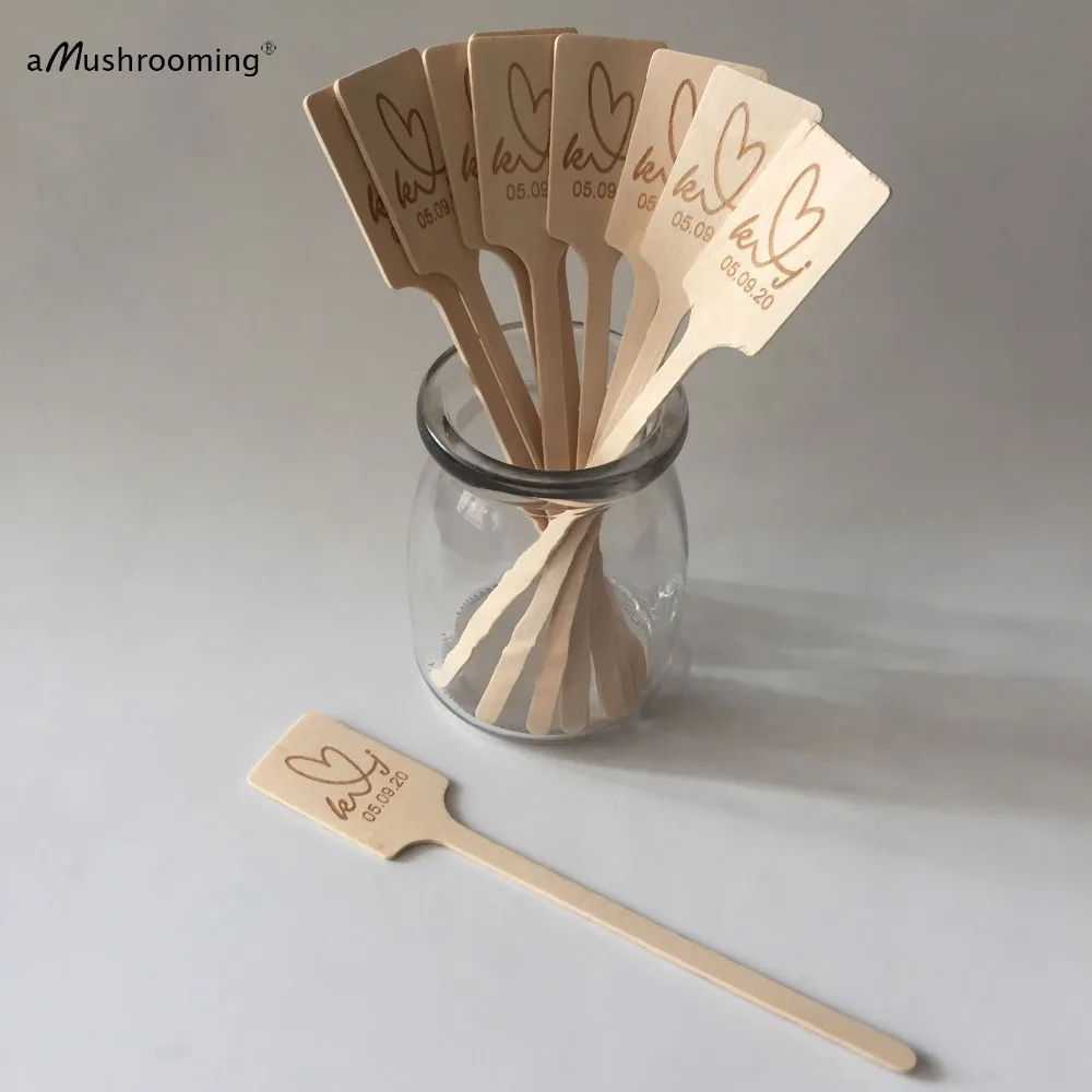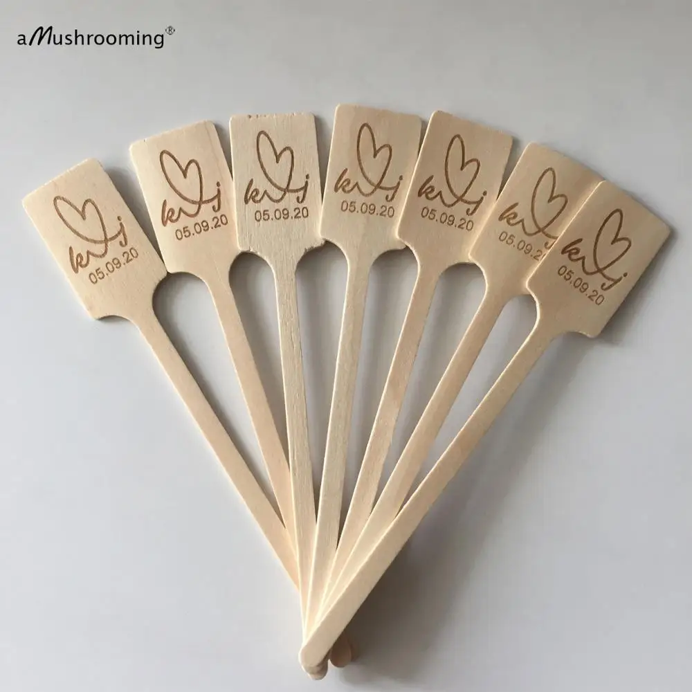 100 шт. персонализированные Дизайн с сердечком Свадебные Stir Sticks с инициалами насквозь и дата подарок подружки невесты свадебные деревянный баннер мешалки