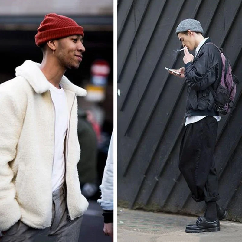 Шапка-Докер унисекс, зимняя вязаная в рубчик, с манжетами, однотонная, с черепом, мешковатая, в стиле ретро, для лыж, рыбаков, мешковатая шапка, Z106