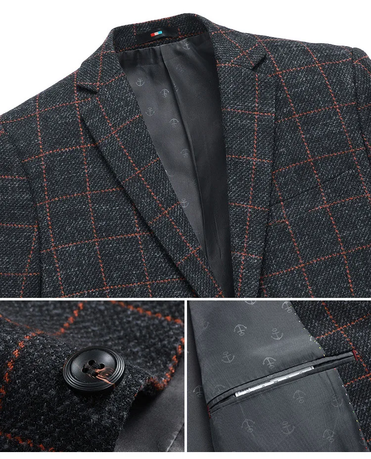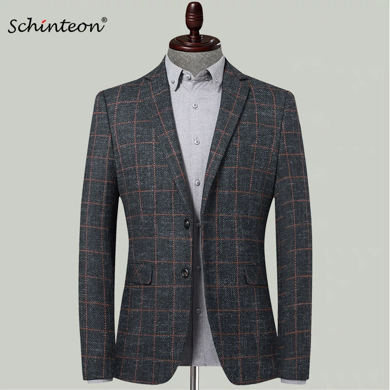 Мужской Блейзер в клетку Schinteon, повседневный приталенный пиджак, одежда для свадьбы и вечевечерние, 2020