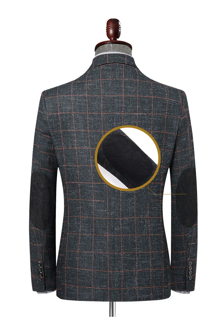 Plyesxale Slim Fit Для мужчин рубашка в клетку пиджак с локтевыми з...