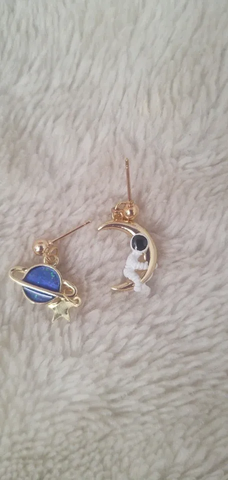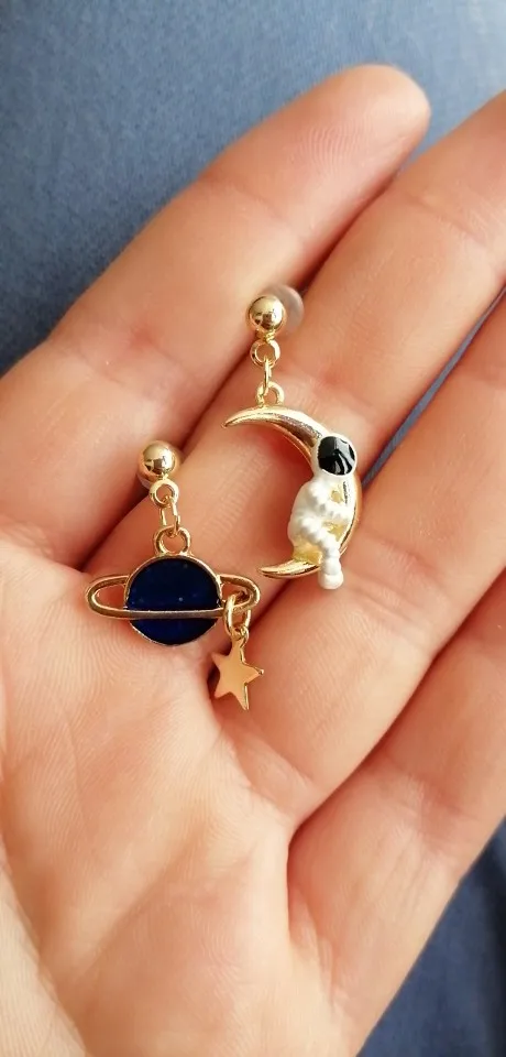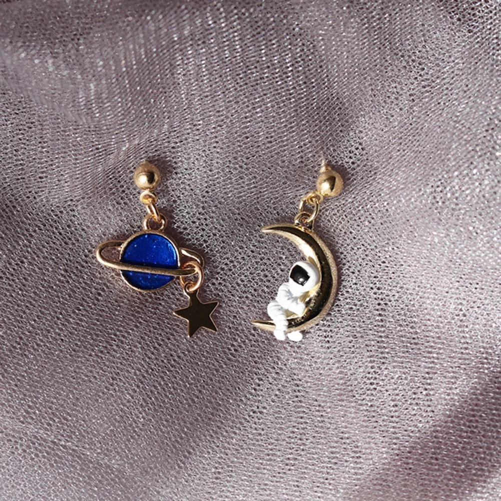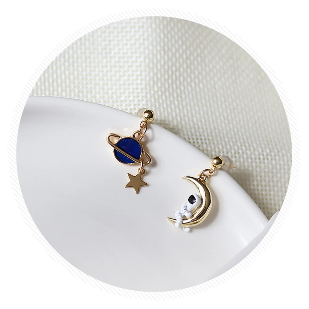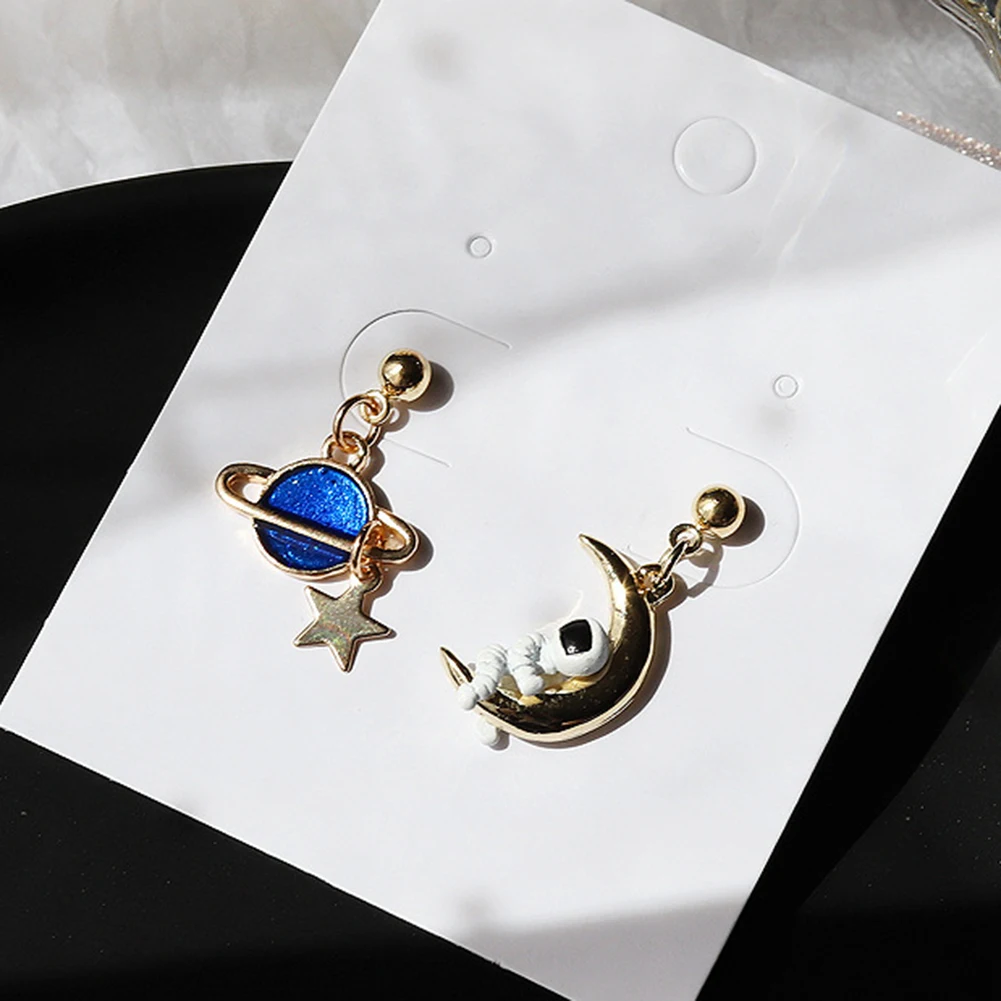 Женские асимметричные серьги, с 3d-изображением космонавта, планеты, звезды, Луны
