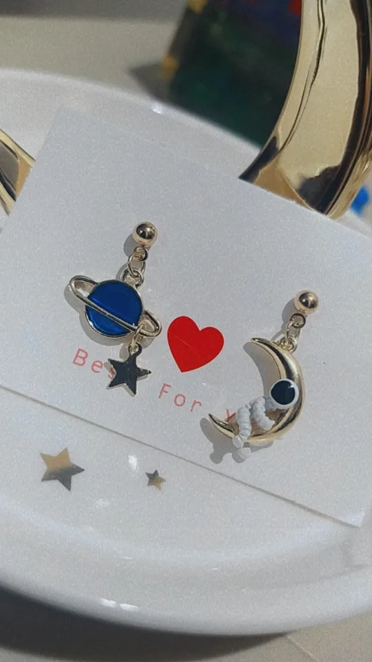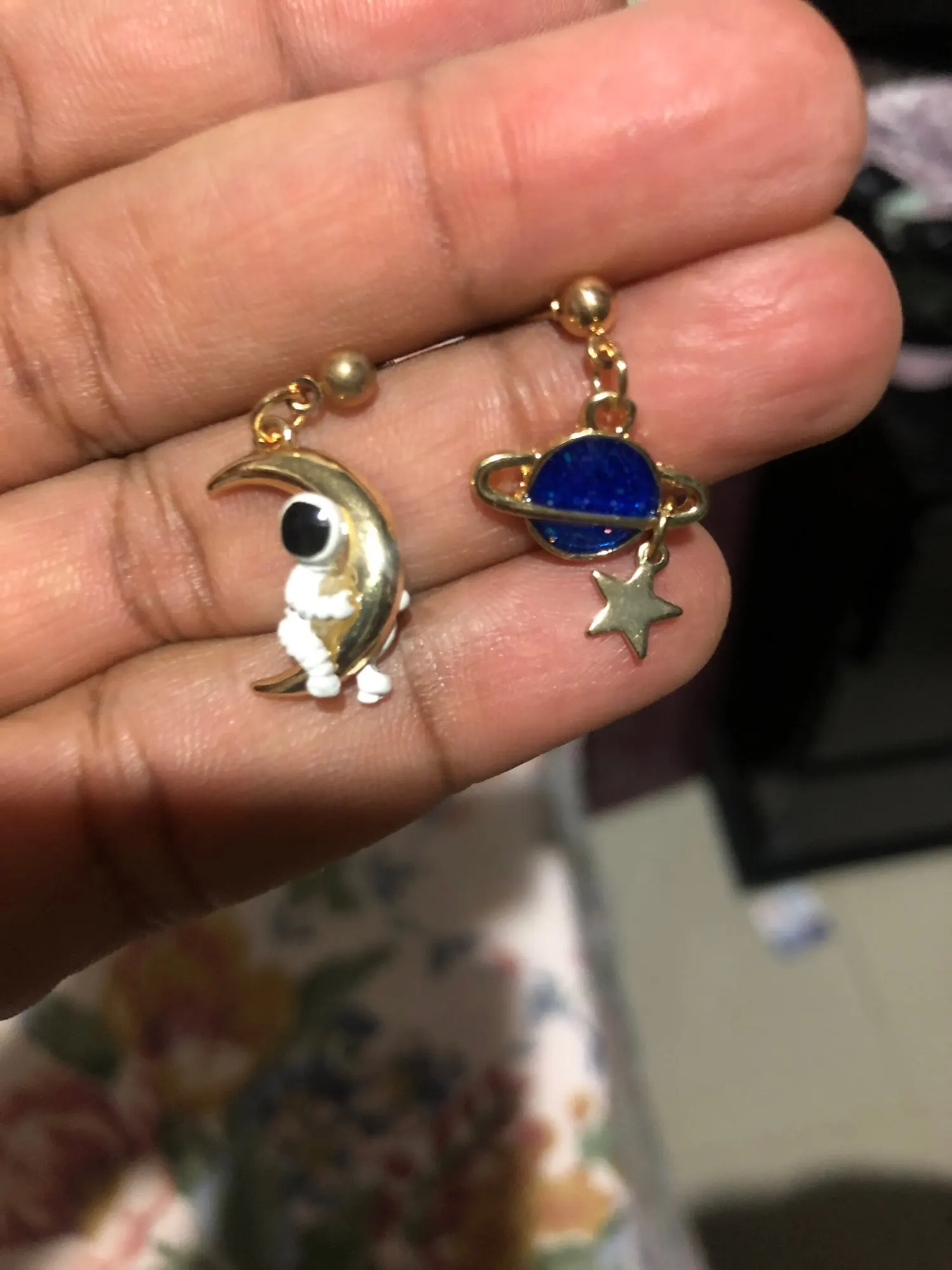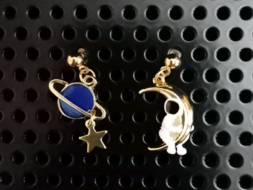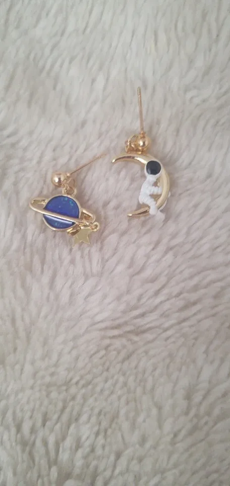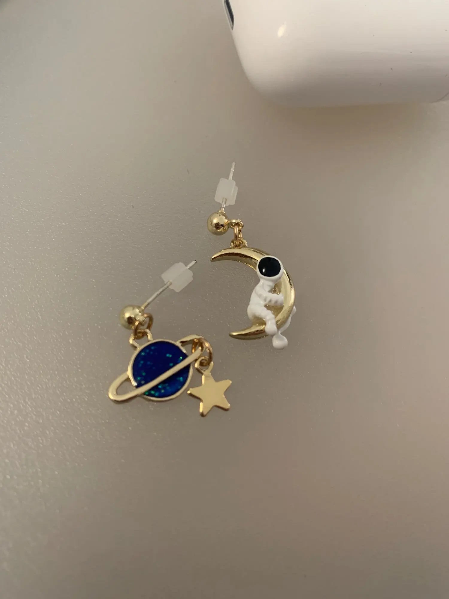Женские асимметричные серьги, с 3d-изображением космонавта, планеты, звезды, Луны