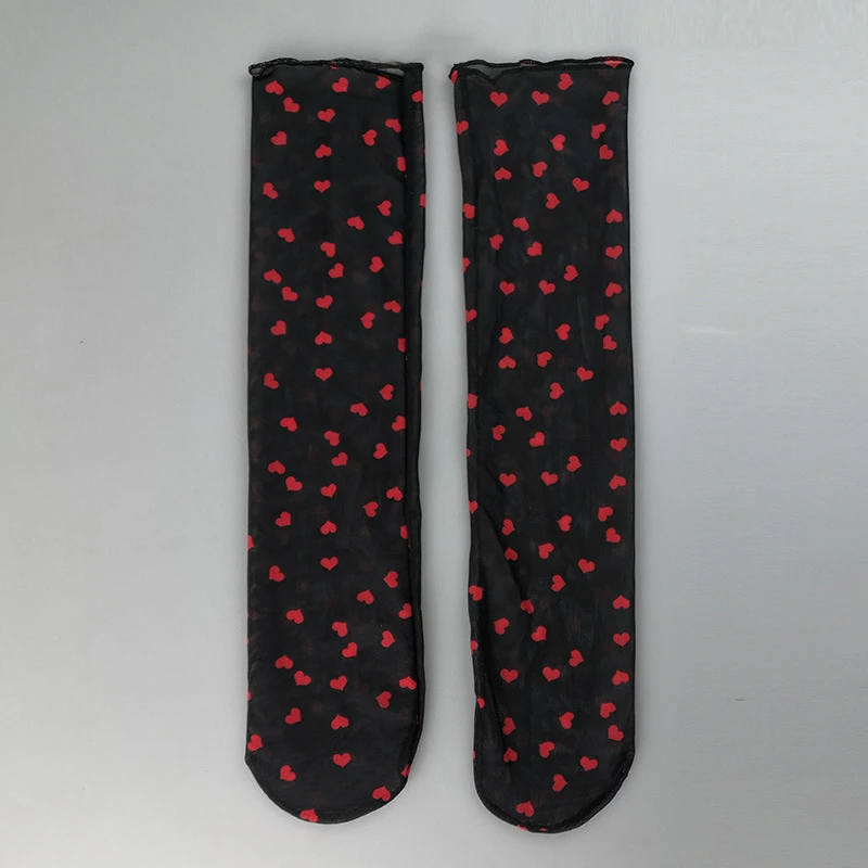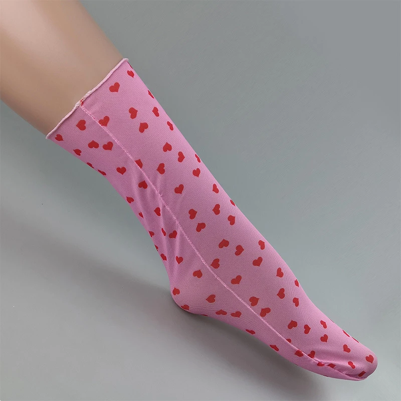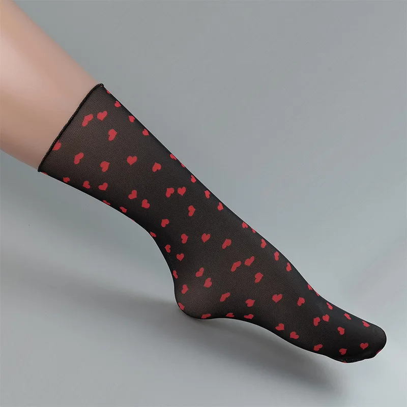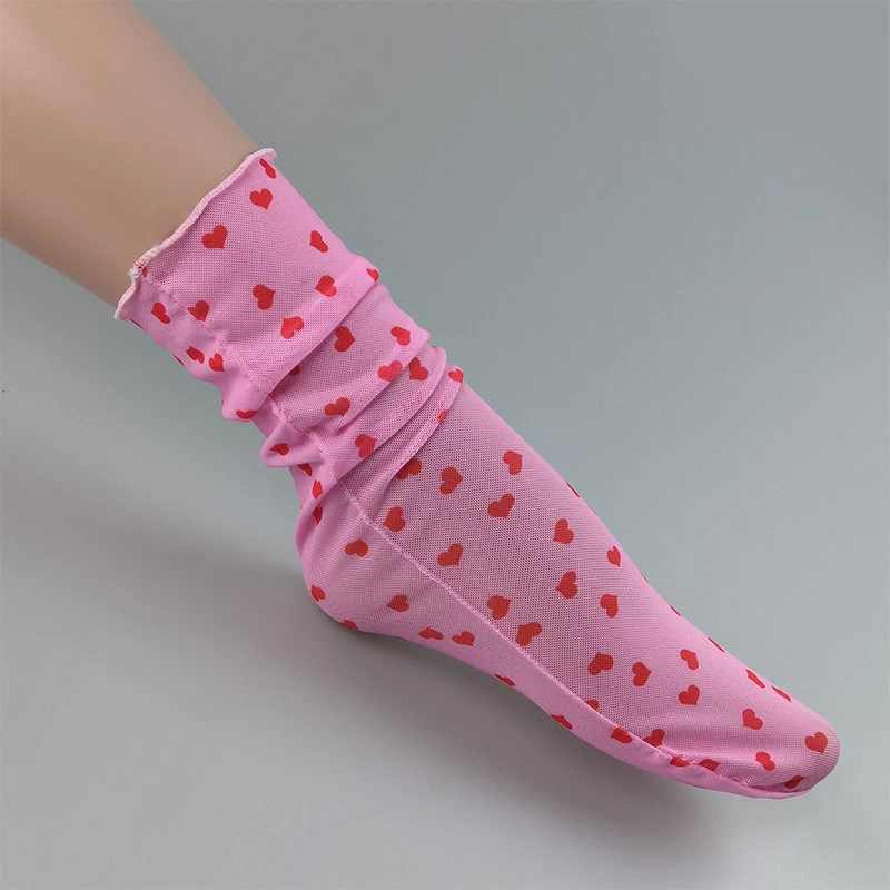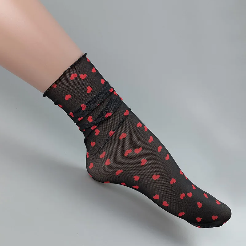 OMSJ черныерозовые прозрачные носки в ретро-стиле с принтом сердца, летние крутые женские мягкие короткие носки, женские короткие прозрачные носки