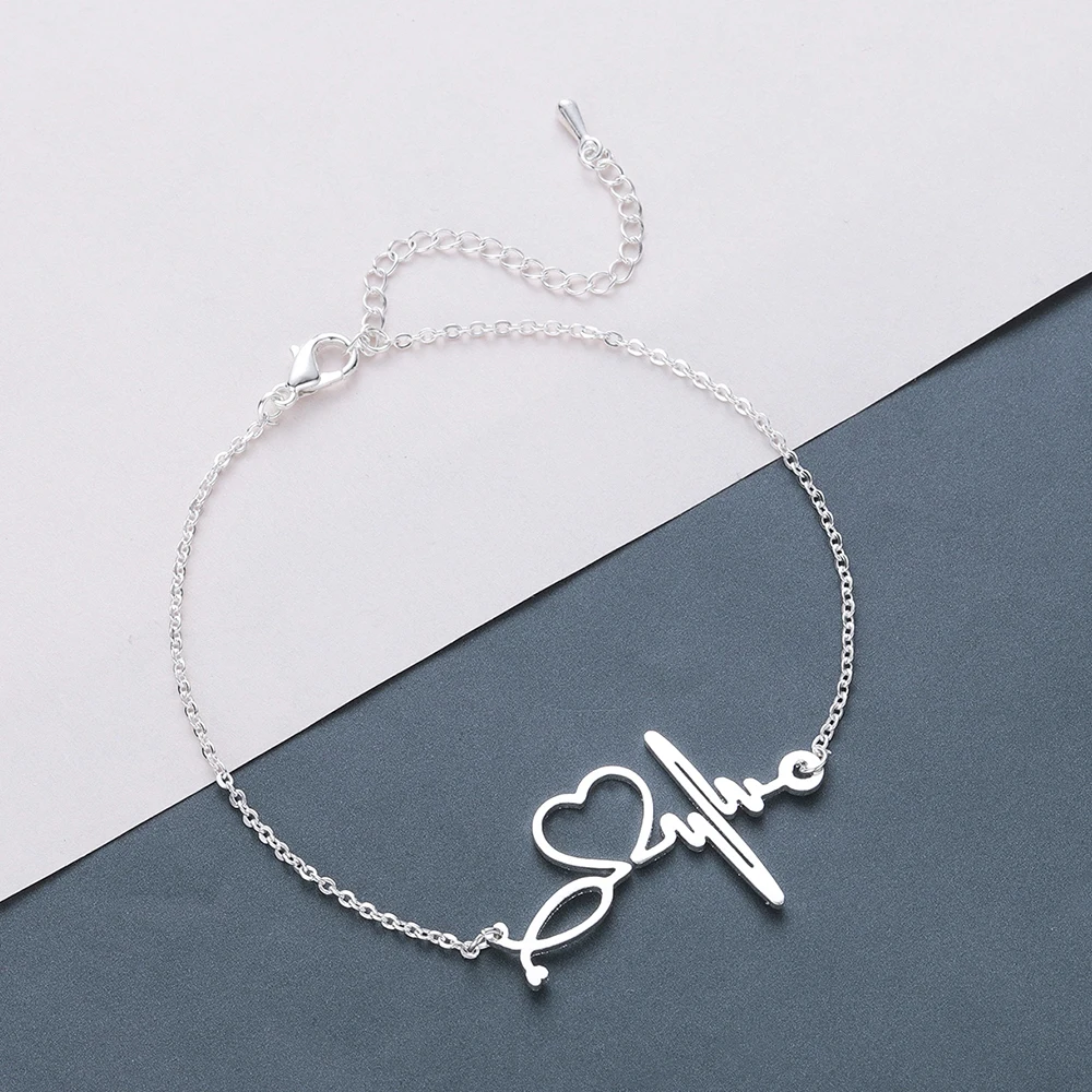 Браслеты Cxwind из нержавеющей стали для кардиограммы сердцебиения женский браслет-цепочка, для медсестры, врача, стетоскопа, ювелирные изделия, манжеты, подарок