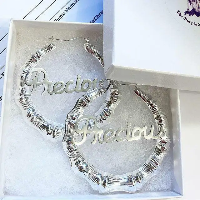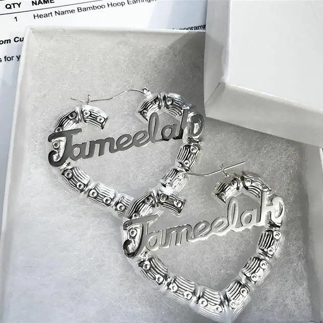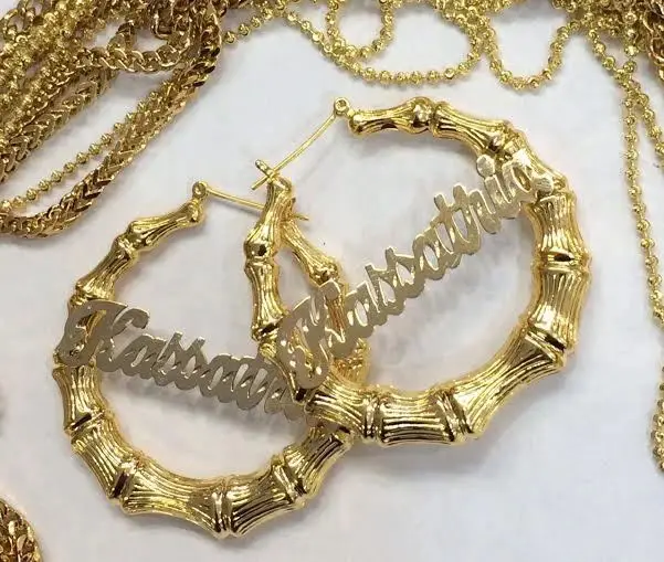 3 метра, серьги в форме сердца, бамбука, хип-хоп, циркониевые буквы, серьги для женщин, индивидуальные, именные серьги, золотые, индивидуальный подарок