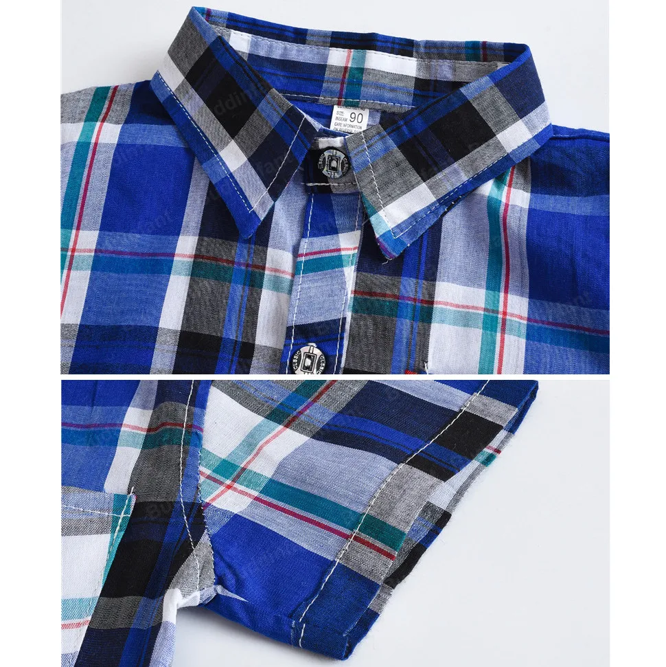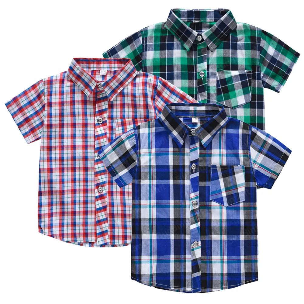 Рубашка в клетку для мальчиков, Детская рубашка в клетку, летняя одежда для мальчиков, рубашки для маленьких мальчиков, школьные топы для детей 5-68 лет