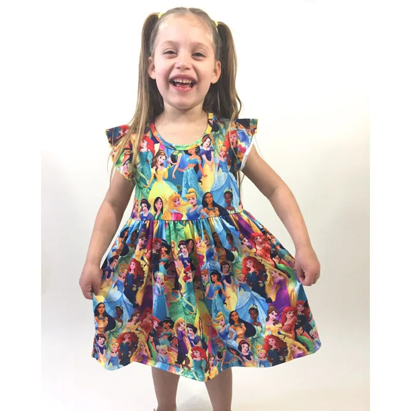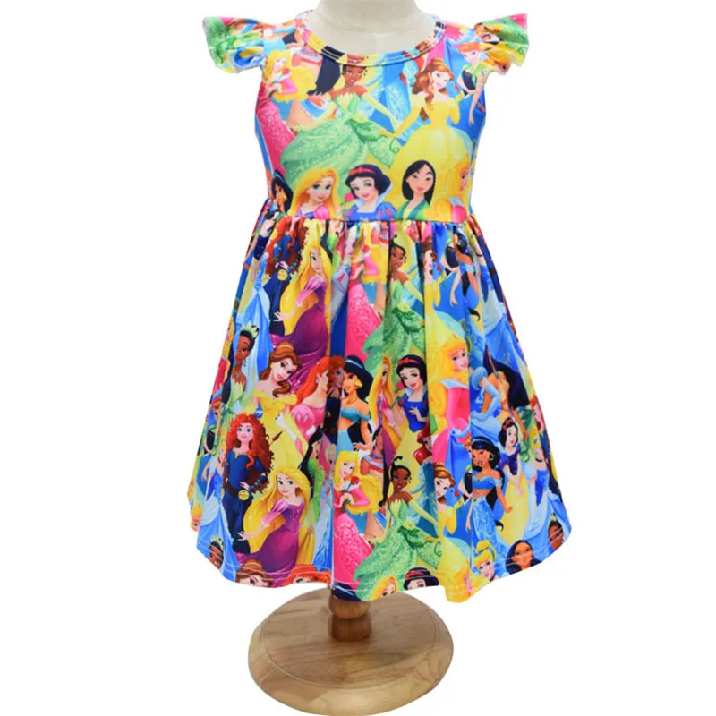 2021 летнее модное платье для девочек с рисунком из мультфильма платья принцессы Мулан Рапунцель Авроры Белль