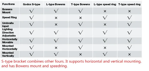 Как оптимизированный запатентованный продукт, кронштейн Godox S-type speedlite превосходит: «Все в одном», меньший размер, портативная конструкция, отсутствие сборки/разборки и простая система крепления. Быстро добавьте аксессуары для освещения Bowens, чтобы получить креативные световые эффекты.