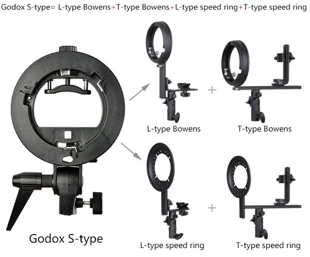 Кронштейн Godox S2 Speedlite, обновленный S-Type держатель для вспы...