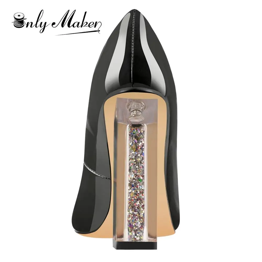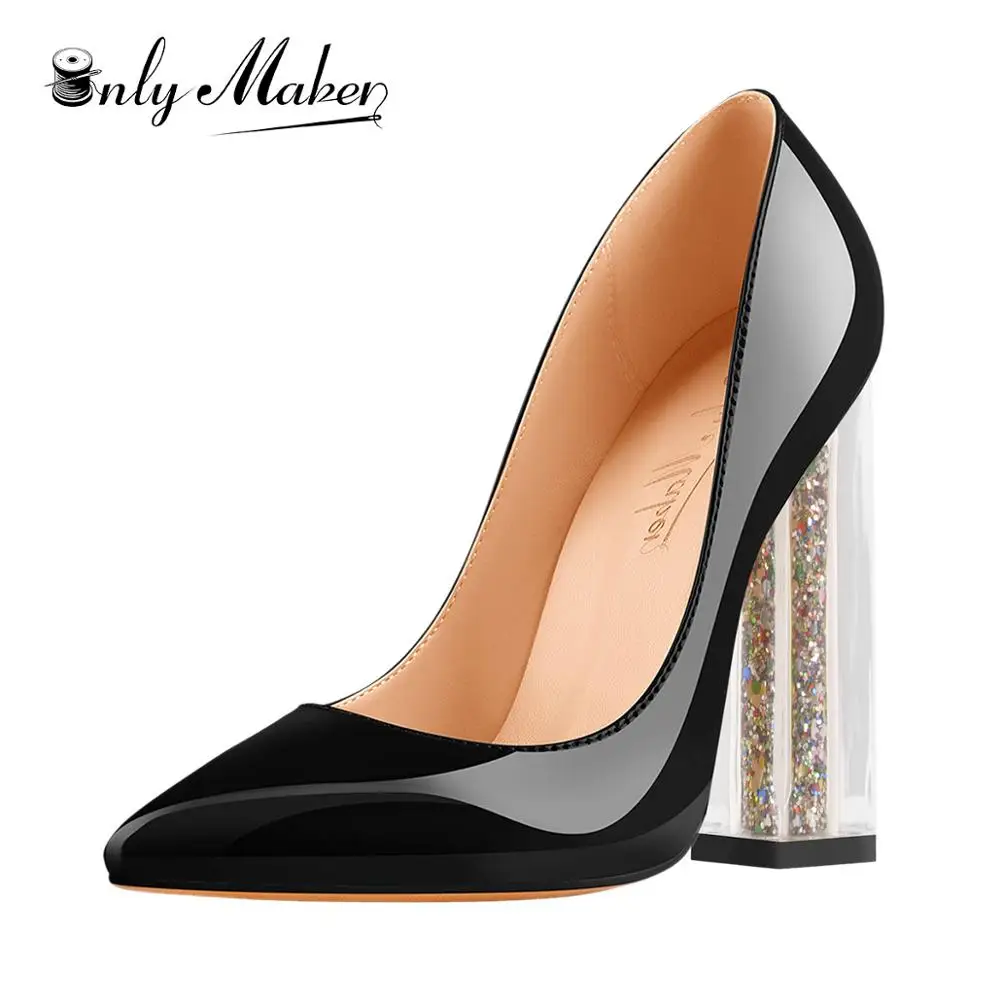 Женские туфли-лодочки Onlymaker, на высоком каблуке, из прозрачного плексигласа, с блестками, черные, с острым носком, туфли-лодочки, US5 US15, размера плюс