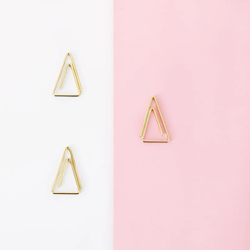 Золотой треугольный металлический зажим для бумаги булавка простое ...