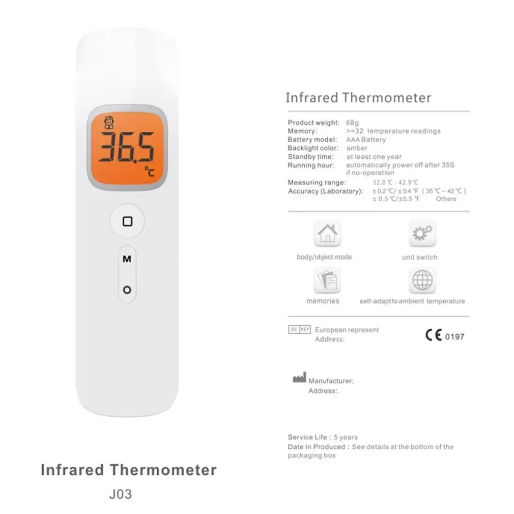 1.Инфракрасный термометр, без ртути, безопасен для использования детьми.