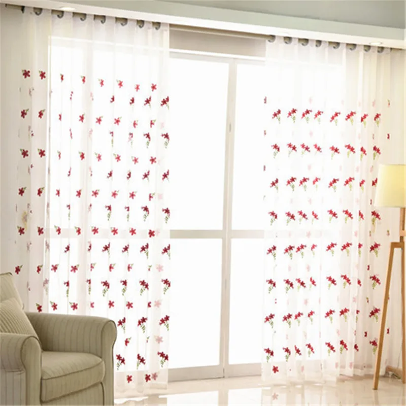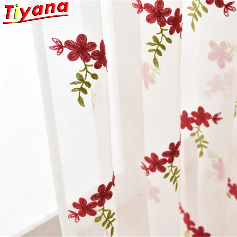 Тюлевая занавеска для гостиной, с красными цветами и 3D вышивкой, занавески для окна в сельском стиле, X-WP261 #30