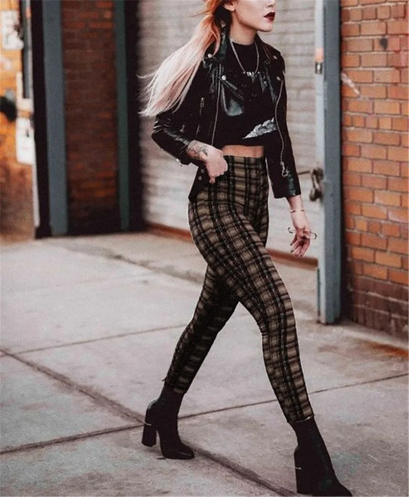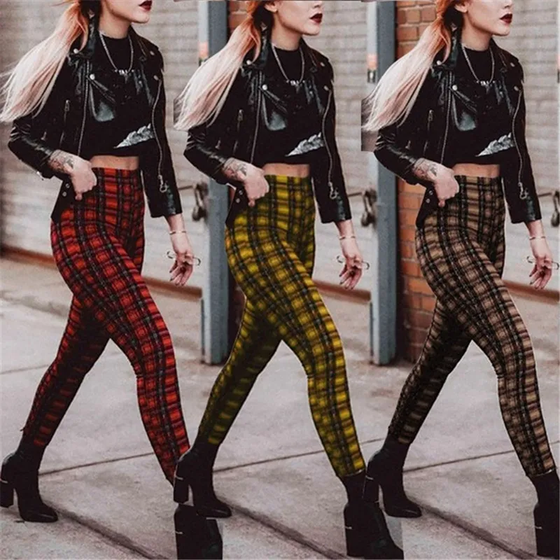 Женские леггинсы с высокой талией, эластичные брюки, повседневные штаны в клетку, новинка 2020