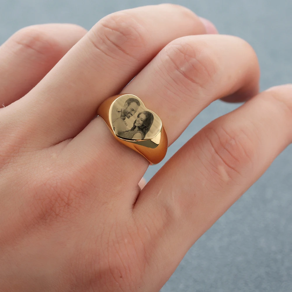 Индивидуализированное кольцо с гравировкой фото пользовательское имя кольца из нержавеющей стали кольцо с именной табличкой для мужчин и женщин обручальные кольца ювелирные изделия