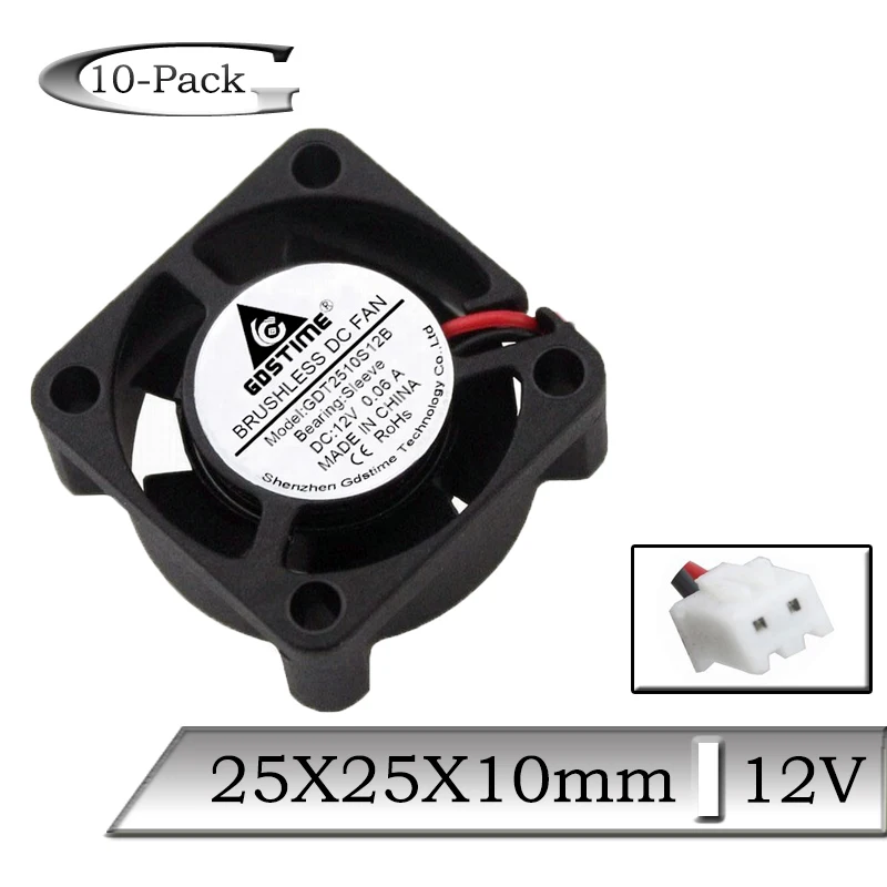10 шт. Gdstime 12 В 25x10 мм 25 мм 2510 мини Бесщеточный радиатор постоянного тока охлаждающий вентилятор 2,5 см 25x25x10 мм Охлаждающий радиатор для 3D-принтера