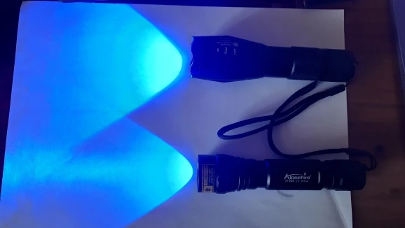 От 19 октября до 9 ноября. Великобритания. Может принимать 3 обычные AAA батареи или литий-ионный аккумулятор. У меня есть УФ-свет 395nm, но этот УФ-свет 365nm показывает больше цветопередачи немного. Свет от cree led слаб, чем мой 50 LED 395nm УФ-свет. Примерно наполовину мощнее, но все равно ок. Возможно, мои батареи были слабы.