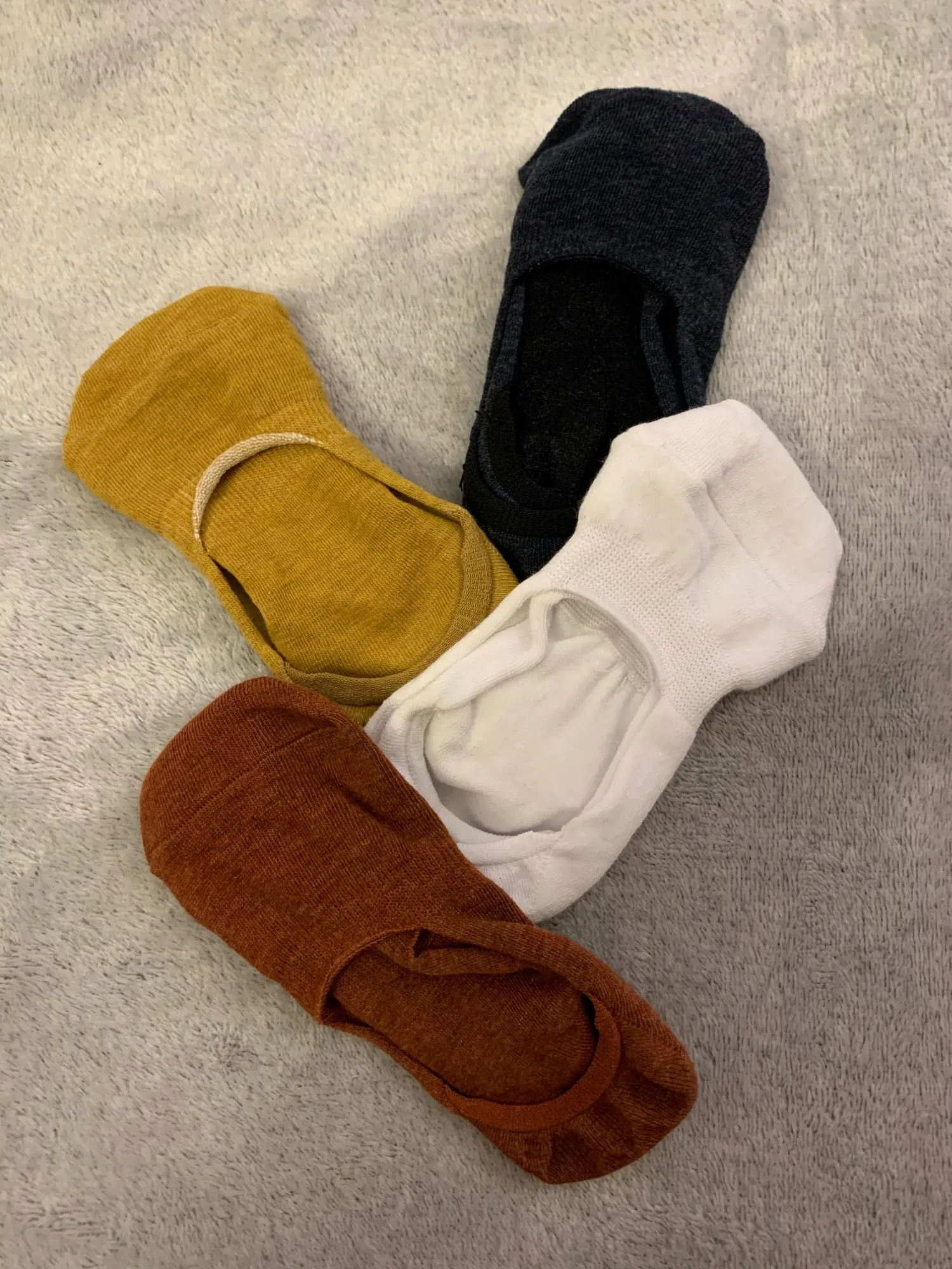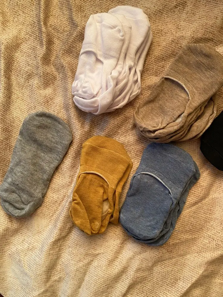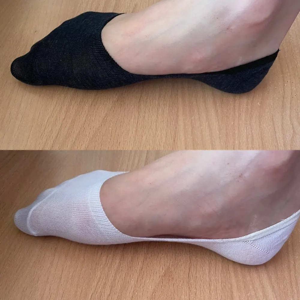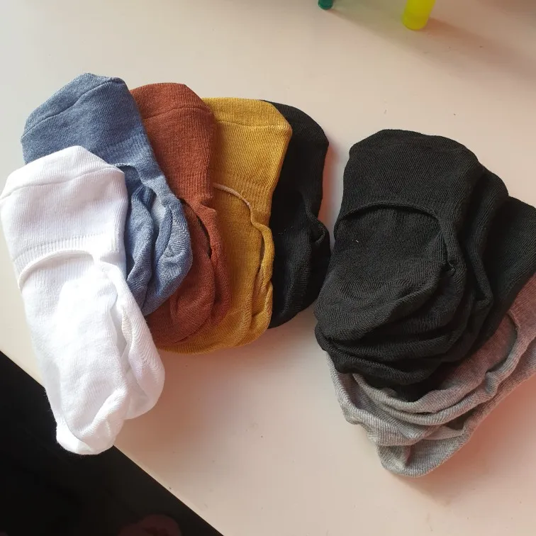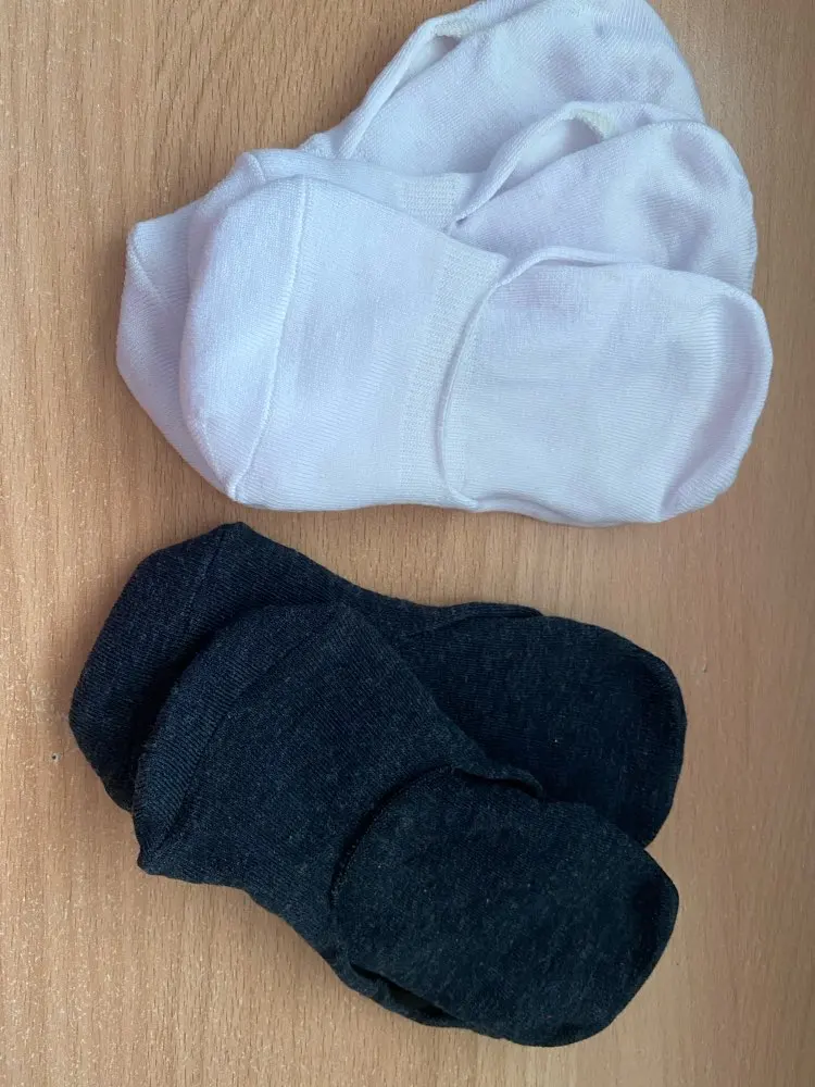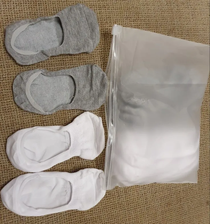Заказала 14.09.20, на почту пришли 6.09.20. Неплохие носки, на европейский 38-39 размер немного маловаты. Я заказывала чёрные с белыми, но у чёрных цвет не насыщен и кажется, что это темно-серо-синий. Выглядит, как будто чёрный цвет посветлел от стирки, но это некритично. На задней части (прилегающей к пятке) есть силикон, чтобы носок не скользил по ноге. И белые и темные носки просвечивают ногу.