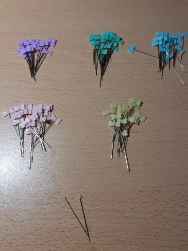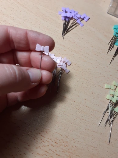 Очень хорошие , тонкие ! Хорошо мягко входят в ткань! А вот другого типа булавки ( покупала в Фикс-Прайсе ) в отдельном боксе с сердечками... толстые и тупые, не воткнешь!