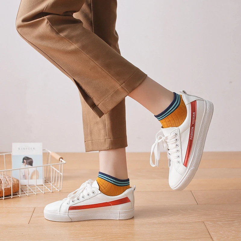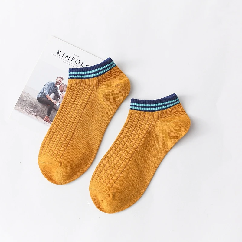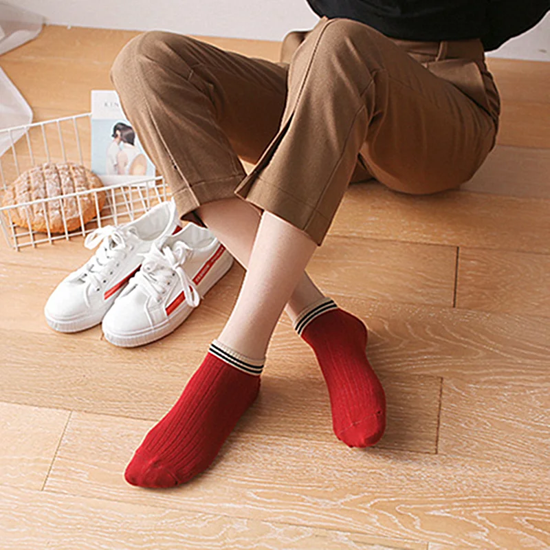 Повседневный Спортивный комплект из двух горизонтальных линий носки до лодыжки женские туфли в студенческом стиле 100 хлопок белый Sudent низкие носки нескользящие носки-Тапочки