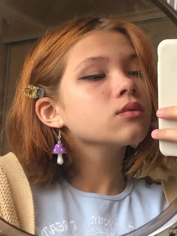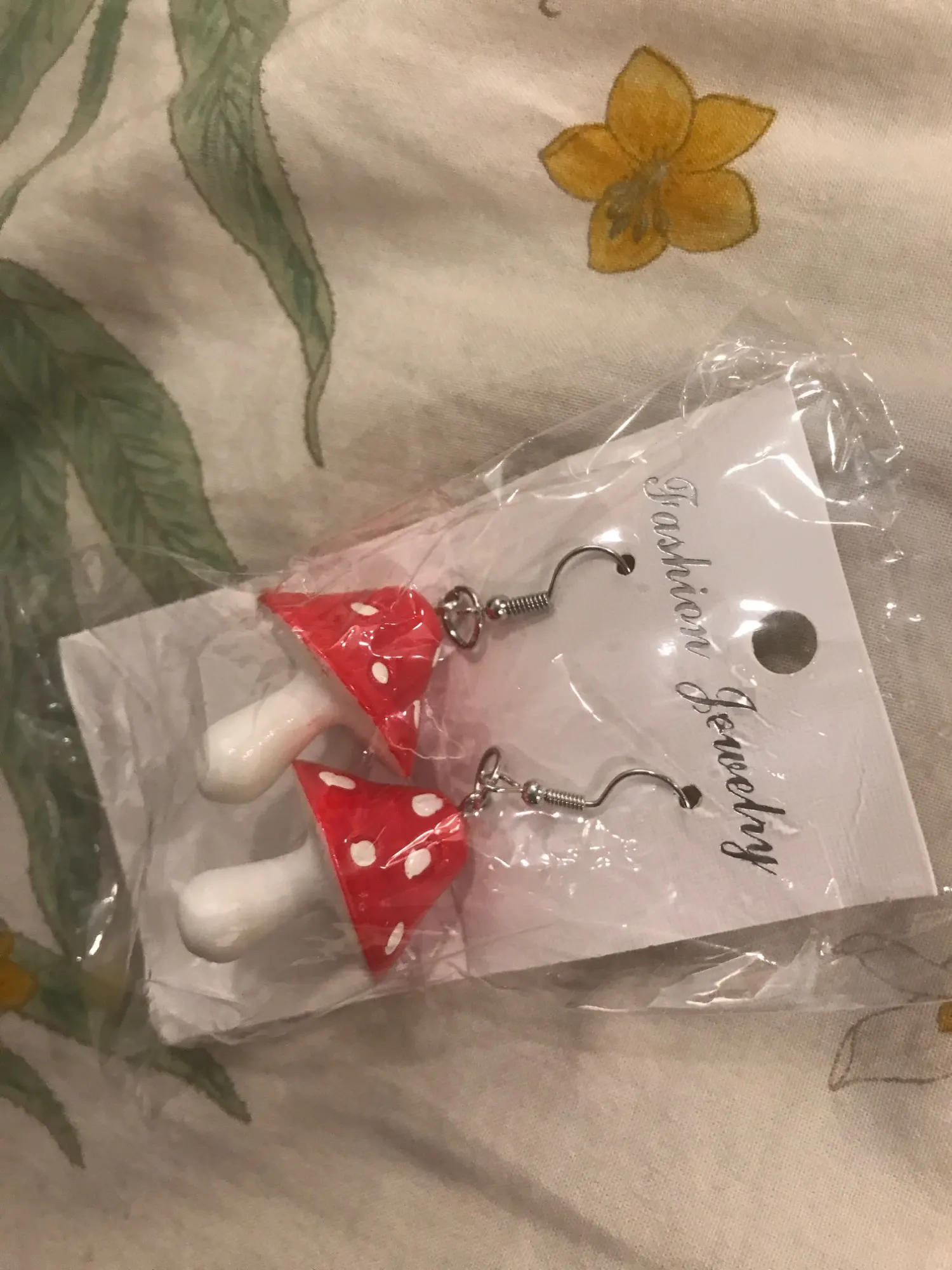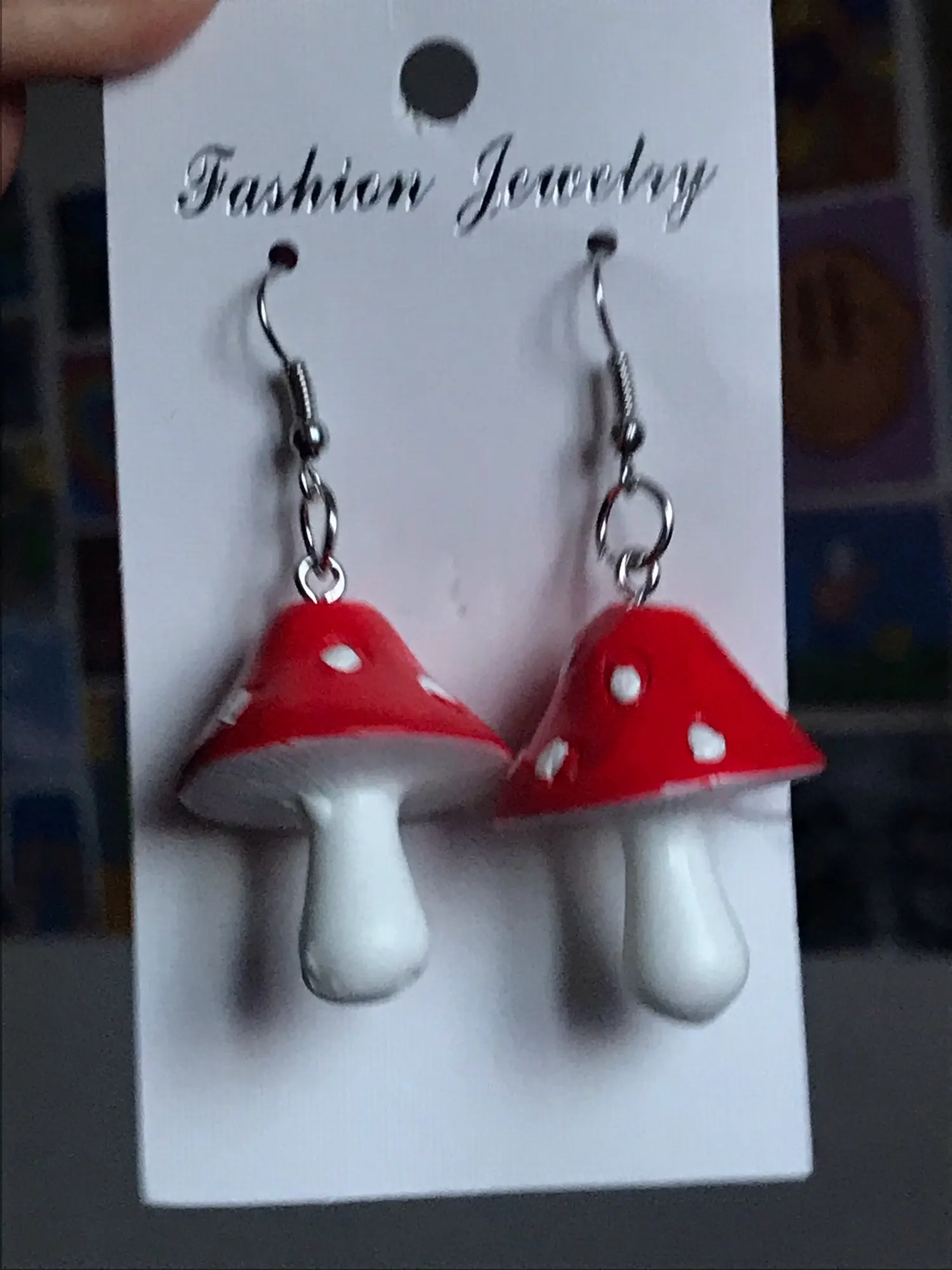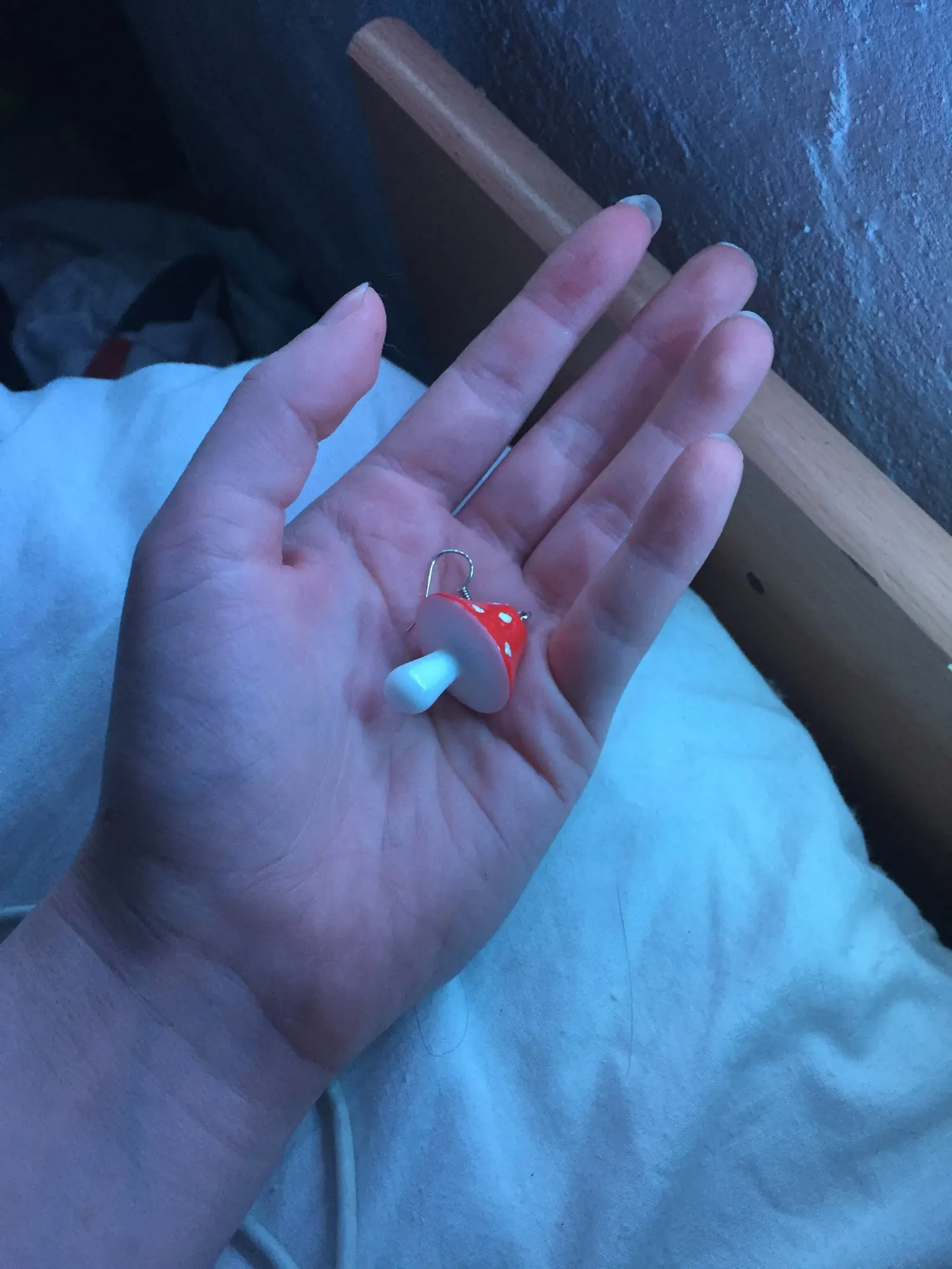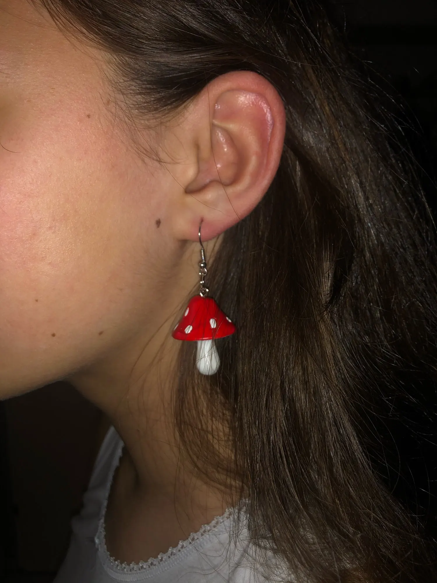 сережки очень красивые не тяжелые точечки немного сдвинуты но это не бросается в глаза все пришло в хорошем состоянии по размеру отлично, единственное это то что когда сережка упала отломалась ножка у грибочка