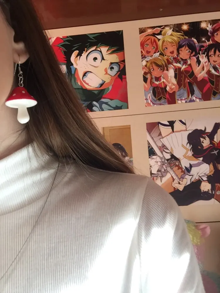 Винтажные Модные женские милые свежие пластиковые длинные Подвесные серьги ручной работы с имитацией грибов забавные ювелирные изделия Аксессуары подарок