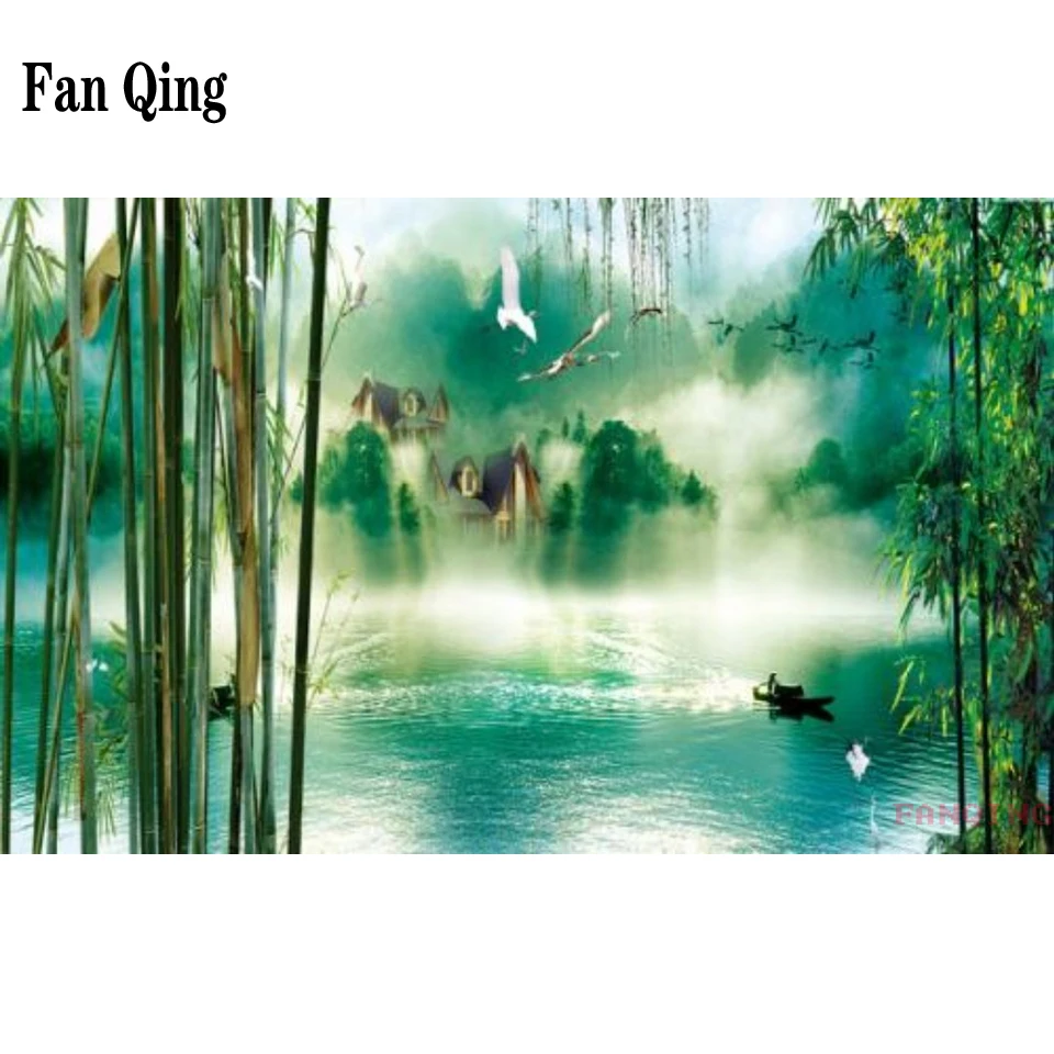 DIY 5D алмазная картина Озеро Лодка egret бамбук полный квадрат/Круглый Алмаз Вышивка крестом мозаика Стразы домашний Декор картина