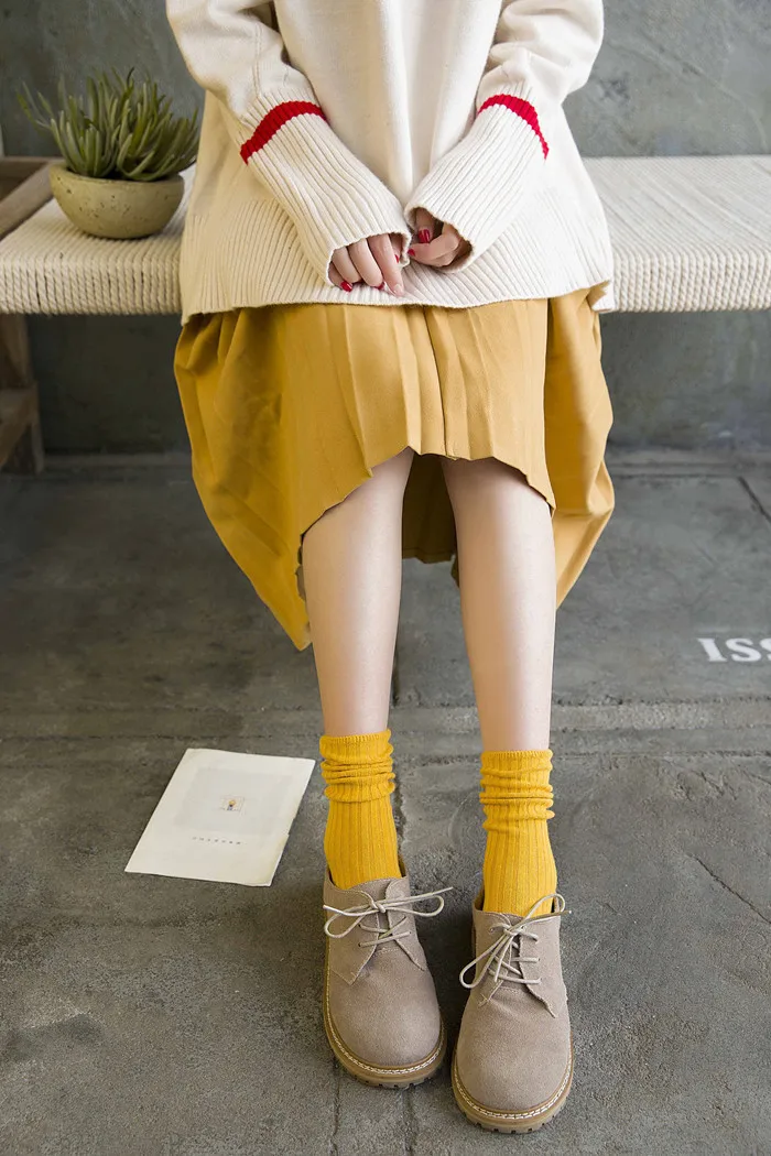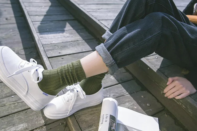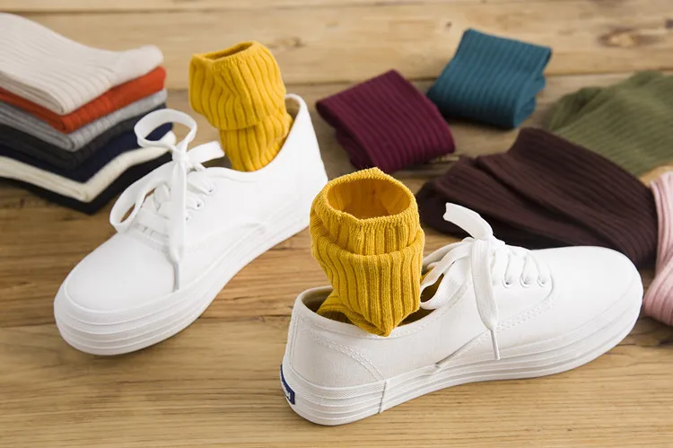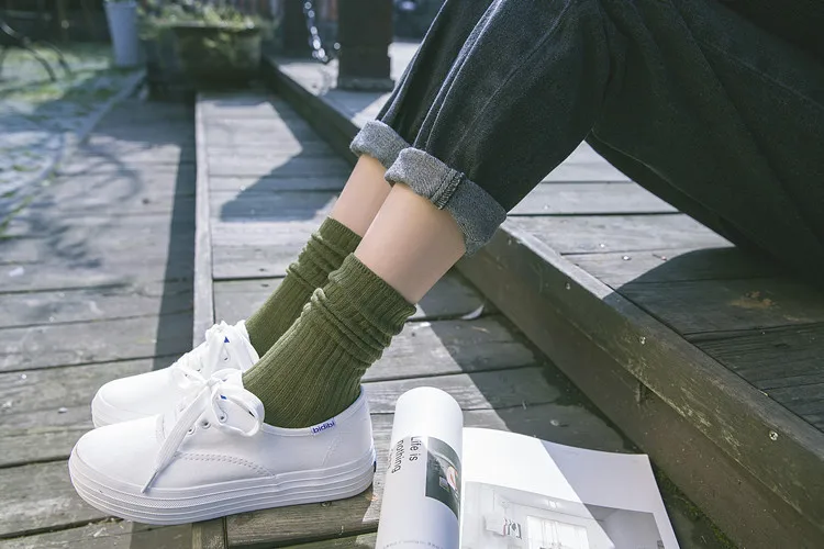 Носки женские хлопковые, в стиле Харадзюку, однотонные, винтажные