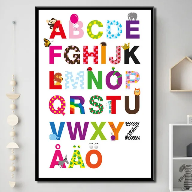 Домашний декор, Модульная картина, принт в скандинавском стиле, АБС плакат с алфавитом, Детская развивающая картина на английском языке, Настенная Картина на холсте