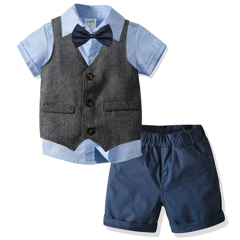 Деловые костюмы для мальчиков, жилет + шорты + рубашка с галстуком, летние праздничные костюмы из хлопка для мальчиков, костюм для мальчиков, детский Блейзер, одежда для маленьких мальчиков, детская одежда