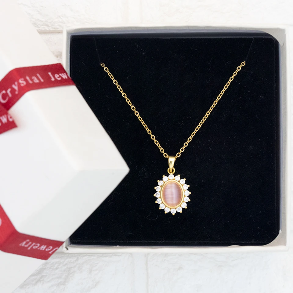 Ожерелье с подвеской в виде опала из нержавеющей стали