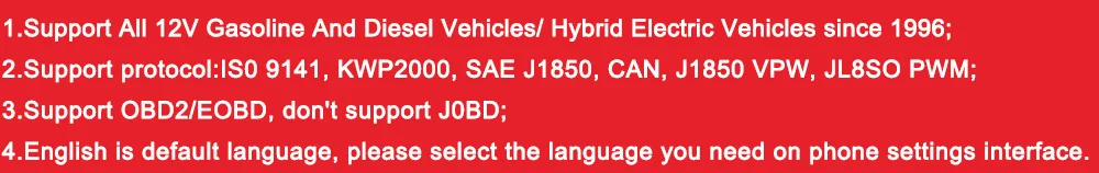 Совместим с большинством автомобилей OBD2. Пожалуйста, ознакомьтесь с нижеуказанными правилами: