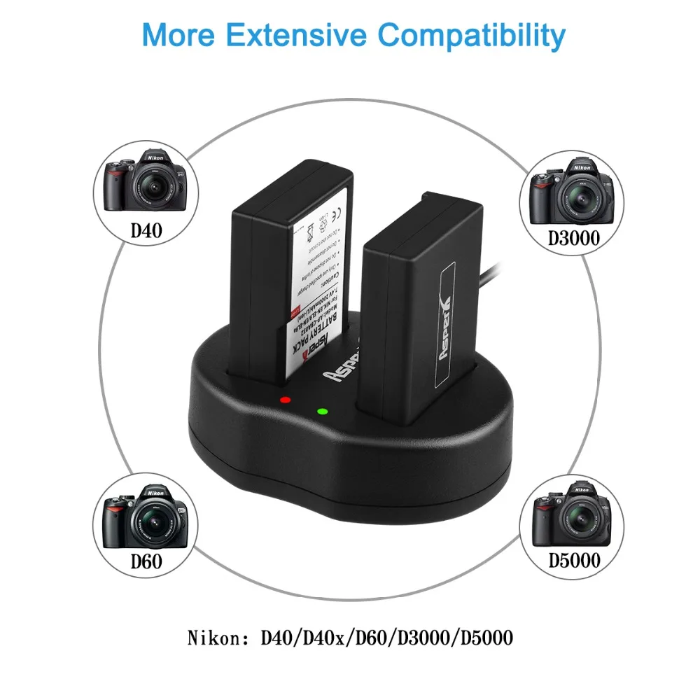 3 шт., аккумулятор 2000 мАч с двумя USB-портами для Nikon ENEL9 D40 D40X D60 D5000 D3000
